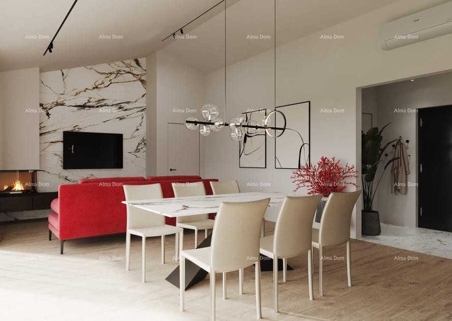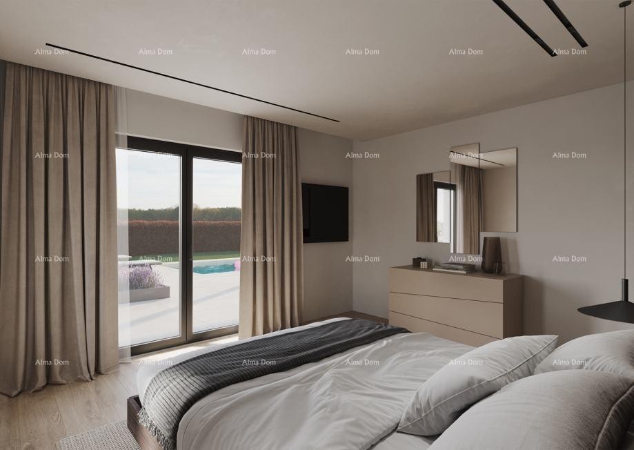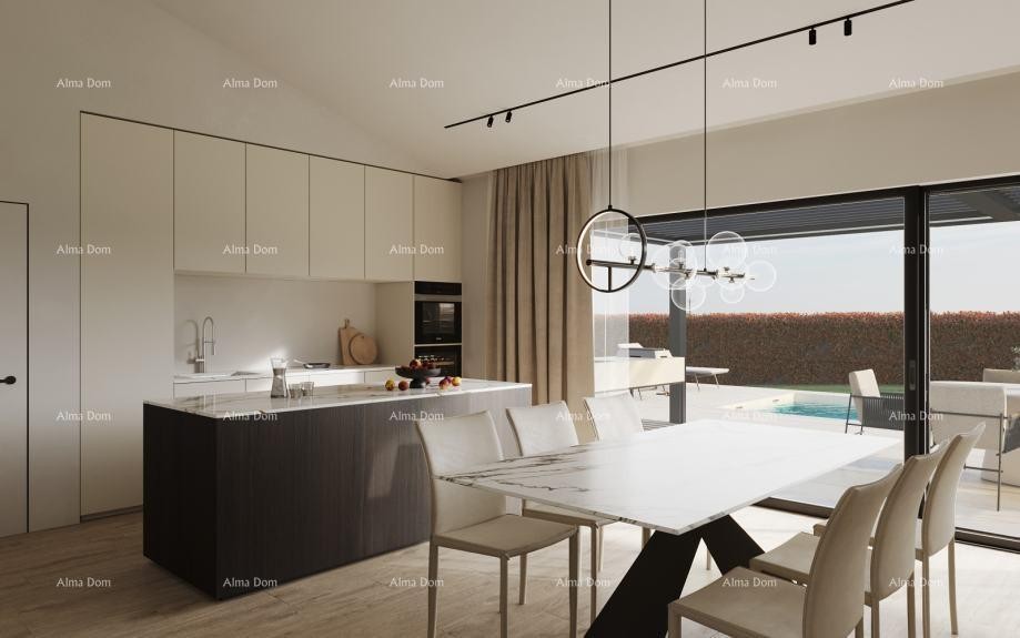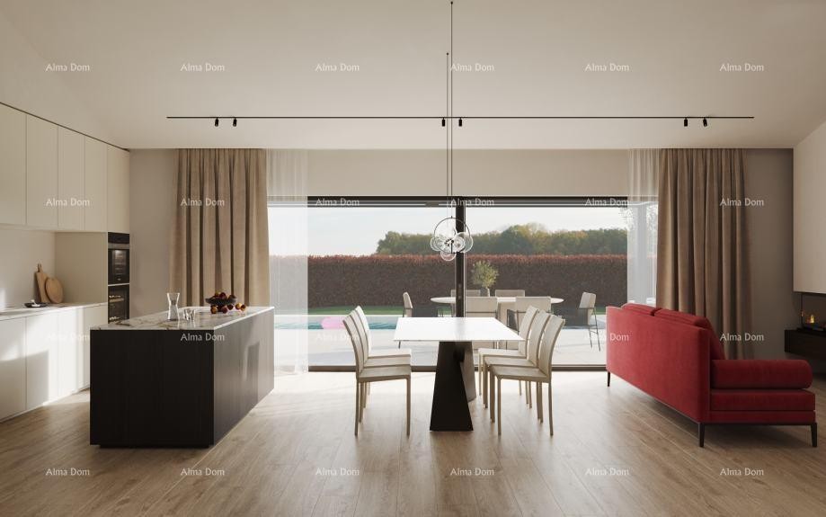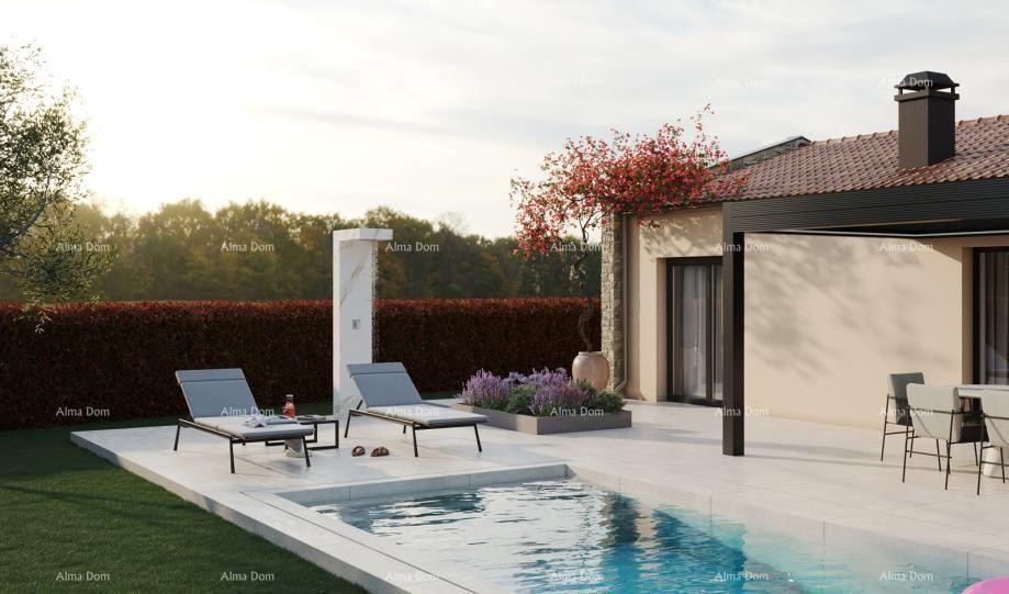 Een modern, elegant huis van één verdieping met zwembad staat te koop in het hart van Istrië, niet ver van Žminj. Het huis is gepland en ontworpen met de nadruk op comfort, functionaliteit en hoogwaardige materialen, en volgens de normen voor het categoriseren van een vakantiehuis met 4 sterren.