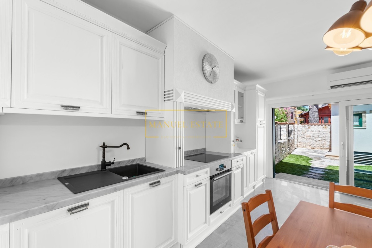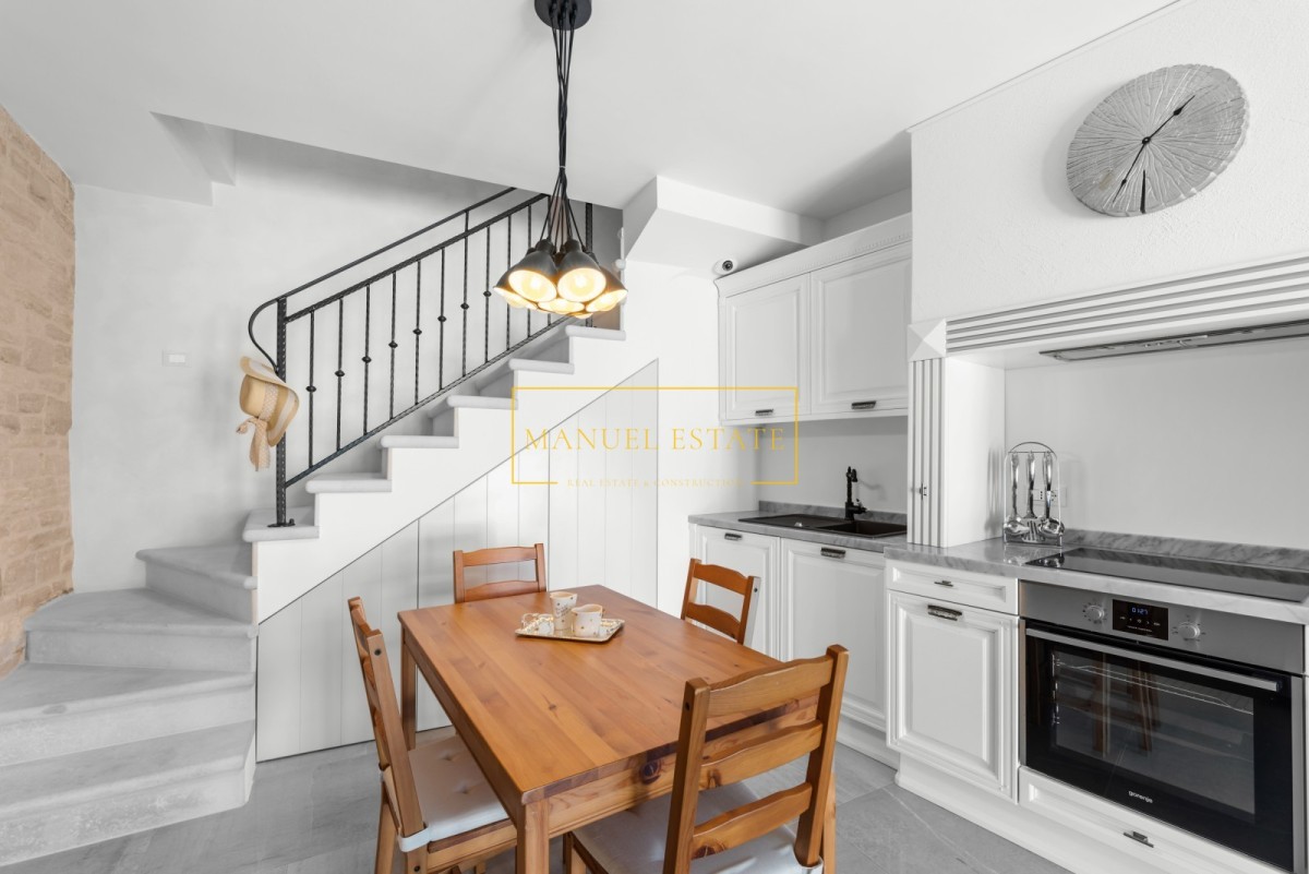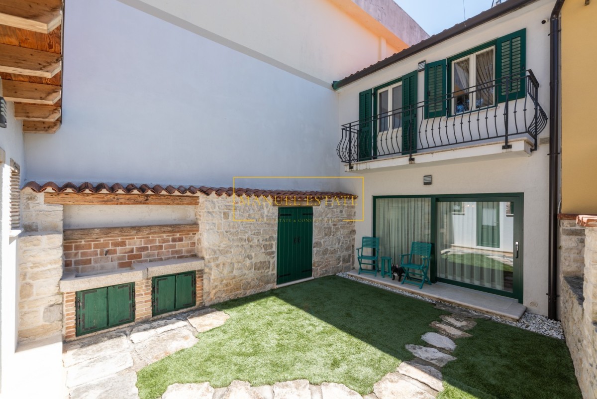 Huis in het stadscentrum, in Novigrad, op slechts 50 meter van de zee en goed onderhouden stranden. Totale oppervlakte 57 m2 met een tuin van 30 m2. De woonruimte is verdeeld over twee verdiepingen; begane grond en eerste verdieping. Op de begane grond bevindt zich een moderne witte keuken + eetkamer + woonkamer met toegang tot het terras en de tuin. Tevens bevindt zich op de begane grond een berging/wasruimte, verborgen onder een stenen trap. Op de eerste verdieping bevindt zich een slaapkamer met toegang tot het terras met uitzicht op de tuin en park, en een badkamer. Op het erf staat nog een tuinhuis met één slaapkamer en een badkamer. Verwarming en koeling gebeurt via airconditioning. De woning is in 2015 geheel gerenoveerd en voorzien van moderne en hoogwaardige meubelen. Door de uitzonderlijke ligging, in het stadscentrum, in de directe nabijheid van winkels, restaurants, banken, postkantoor en alle andere noodzakelijke voorzieningen voor een comfortabel dagelijks leven, is deze prachtige tussenwoning een ideale woning voor iedereen die zich wil bezighouden toerisme, maar ook voor huisvesting het hele jaar door. Het huis wordt volledig gemeubileerd verkocht. Prijs: 479.000 euro. Voor alle overige informatie kunt u gerust contact met ons opnemen.