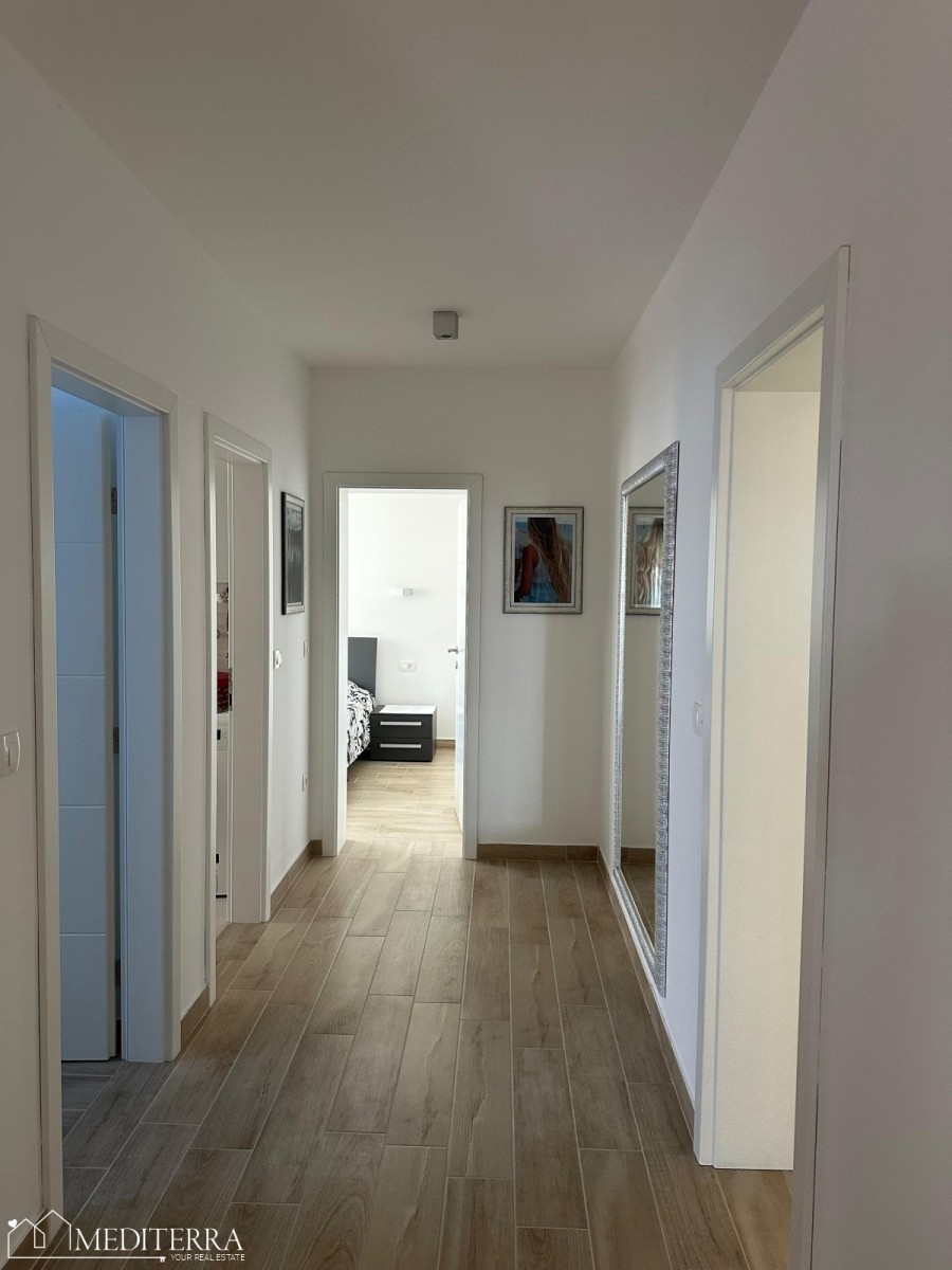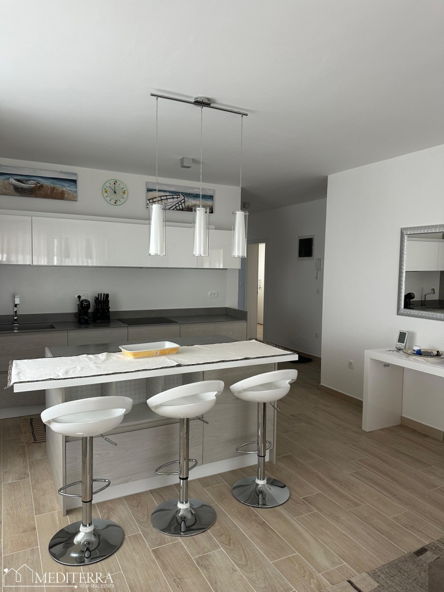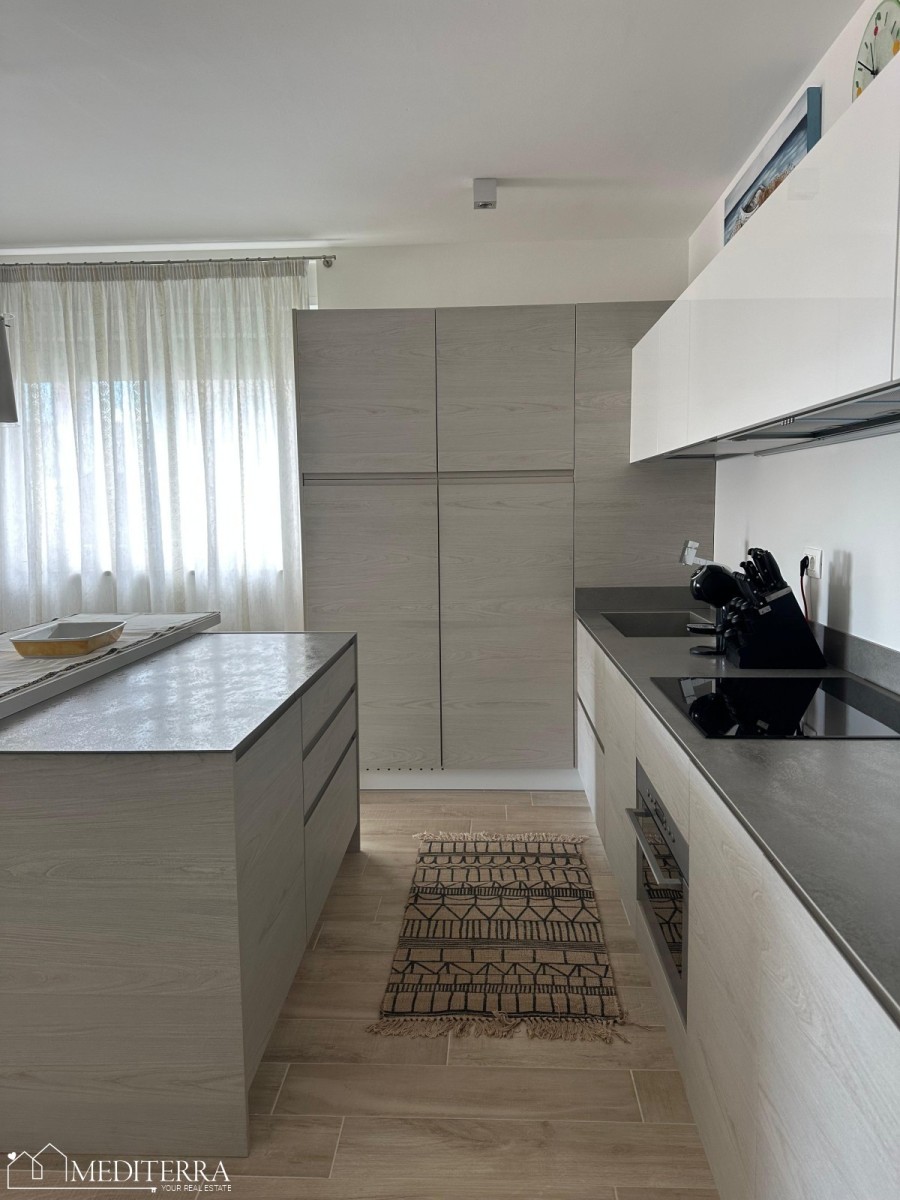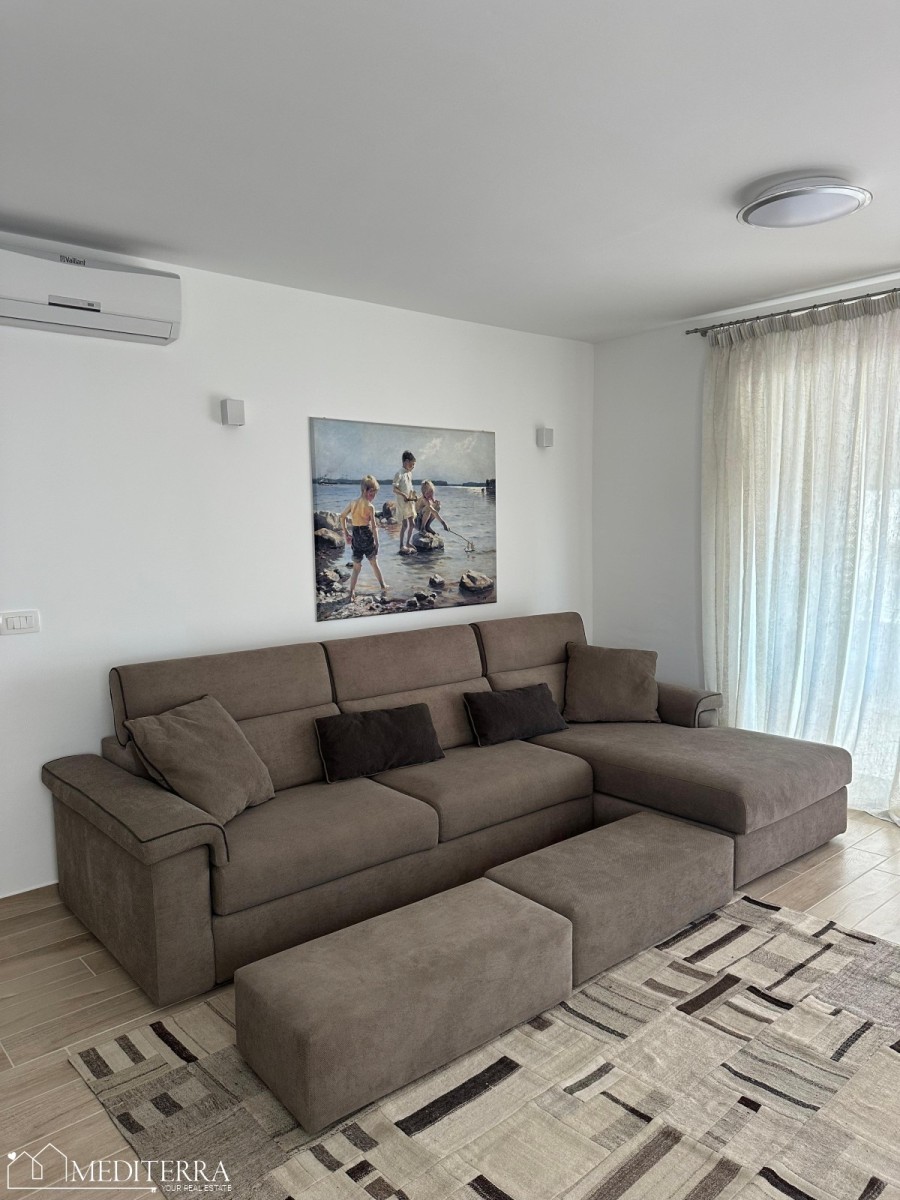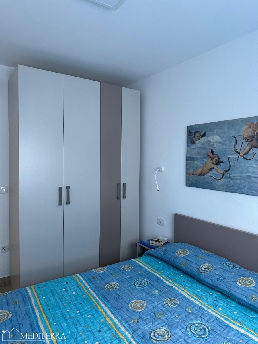 Naprodaj je stanovanje s čudovitim pogledom na morje. Nahaja se v prvem nadstropju manjše stanovanjske stavbe in je sestavljeno iz treh spalnic, prostorne dnevne sobe, kuhinje z jedilnico in kopalnice.