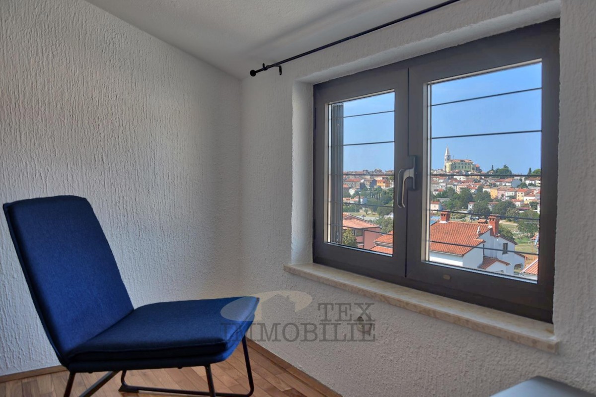 To čudovito stanovanje se nahaja v drugem nadstropju stanovanjske stavbe v mirni ribiški vasici Vrsar, nedaleč od mesta Poreč. Sestavljeno je iz dnevne sobe, jedilnega prostora, popolnoma opremljene kuhinje, dveh elegantnih spalnic, dveh sodobnih kopalnic in popolnoma pokrite terase, ki ponuja spektakularen razgled na Vrsar in morje. Ena od spalnic ima svojo zasebno kopalnico.