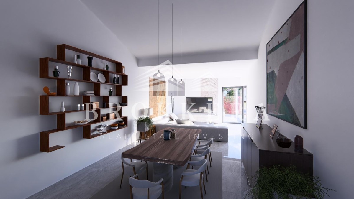 V Tinjan, v slikoviti Kringi, se nahaja lepo mesto, kjer se bo naslednje leto začela gradnja dvojne hiše, ki ponuja spoj modernega dizajna in funkcionalnosti, idealna za vse, ki iščejo popoln dom ali hišo za počitnice. Ta nepremičnina obsega 114 m², pripadala ji bo tudi zemljišče velikosti približno 340 m². Oddaljena je le 2000 m od centra in 16000 m od morja. S tremi spalnicami in tremi kopalnicami je hiša popolna za družino ali skupino prijateljev, saj zagotavlja udobje in zasebnost vsem.