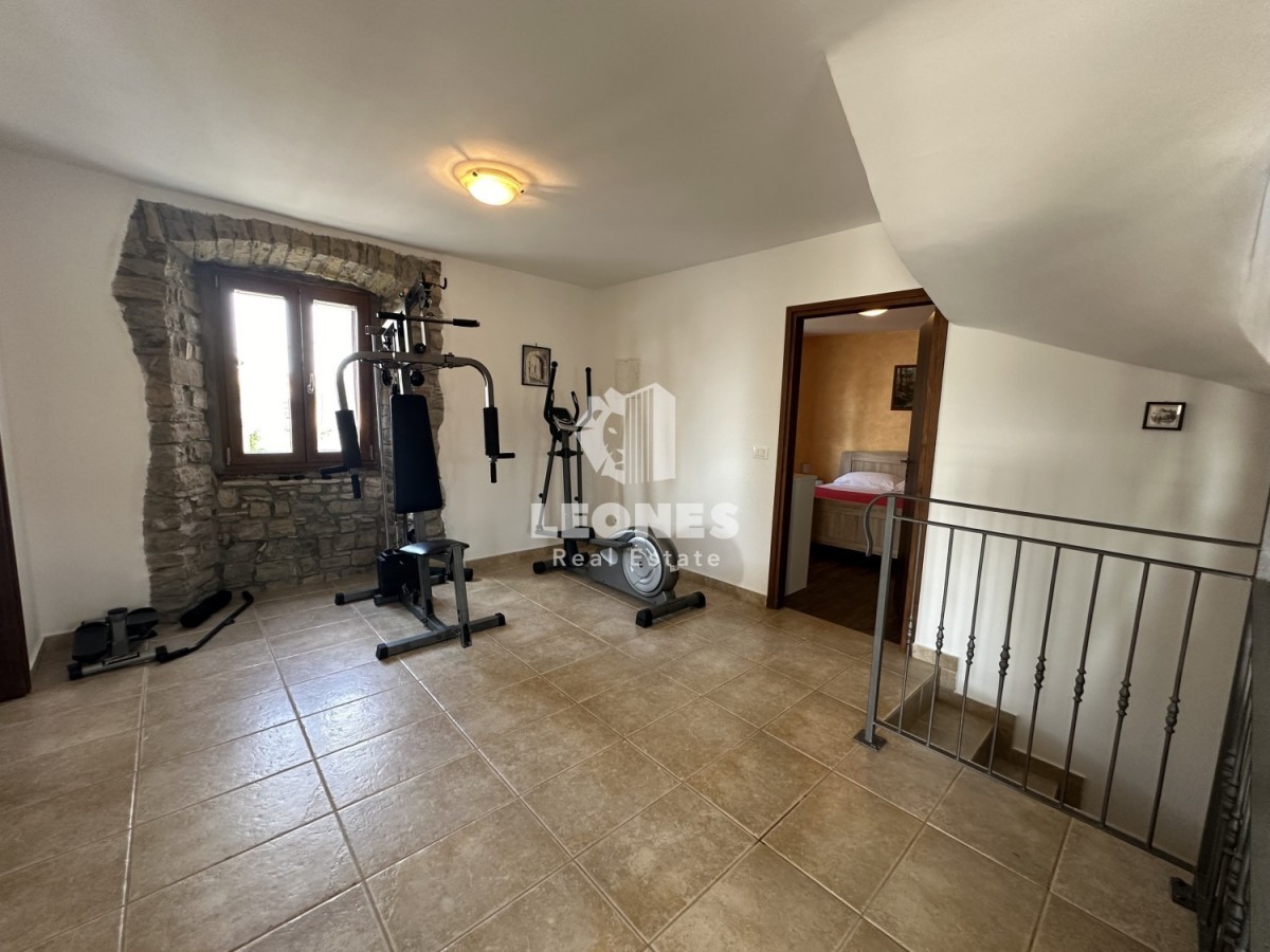 V prvem nadstropju sta dve spalnici, vsaka s svojo kopalnico, ter prostor za športne aktivnosti (mini fitnes).
