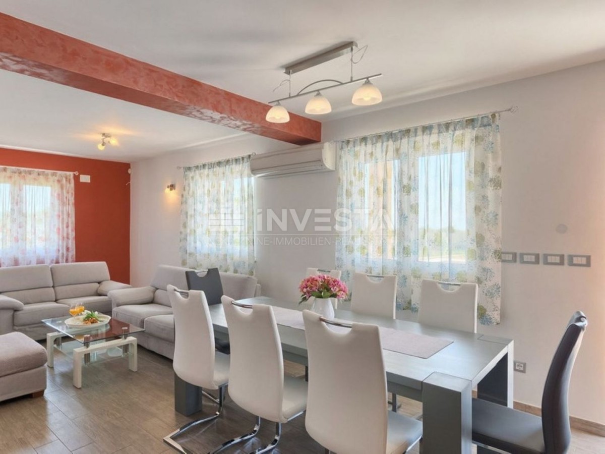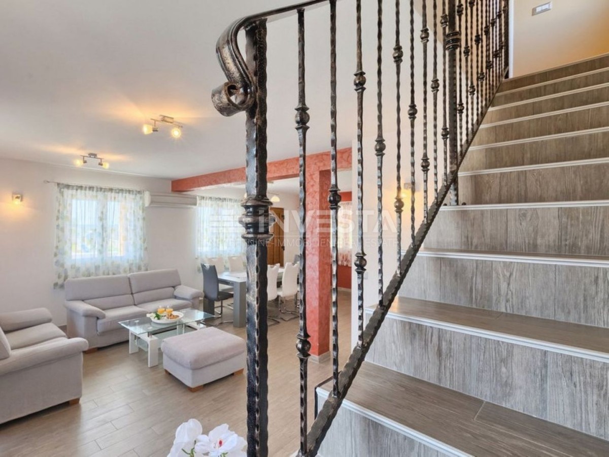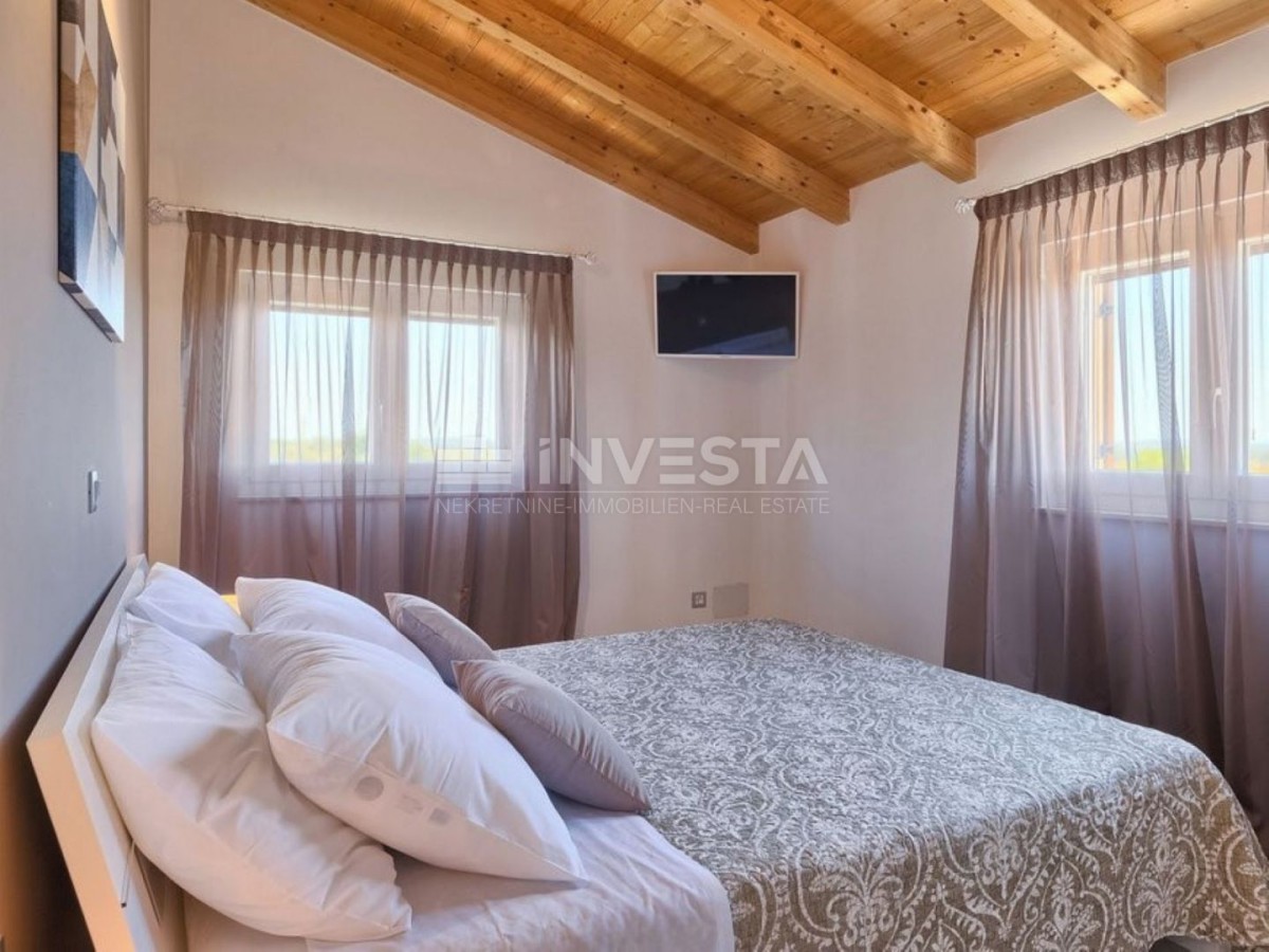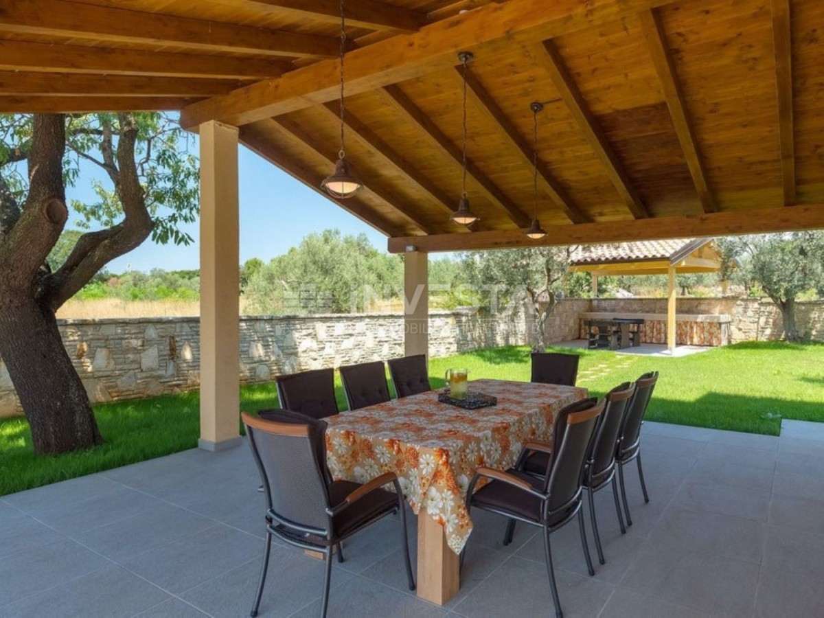 Ta čudovita vila se nahaja na mirni lokaciji in obsega 180m², s prostornim dvoriščem velikosti 2237m². Nepremičnina ponuja čudovit razgled na morje in Brionski arhipelag. Ogrevanje je na drva in s klimatskimi napravami. Fasada je toplotno izolirana z 8 cm debelim slojem izolacije, kar omogoča precejšnje prihranke energije. Okna so opremljena s PVC okvirji in visokokakovostnimi ALU žaluzijami. Tla so prekrita z visokokakovostnim parketom in ploščicami. Okoliščina je popolnoma ograjena z kamnitim zidom, na voljo pa je tudi zunanji žar. Za dodatno varnost je nepremičnina opremljena z alarmnim sistemom.