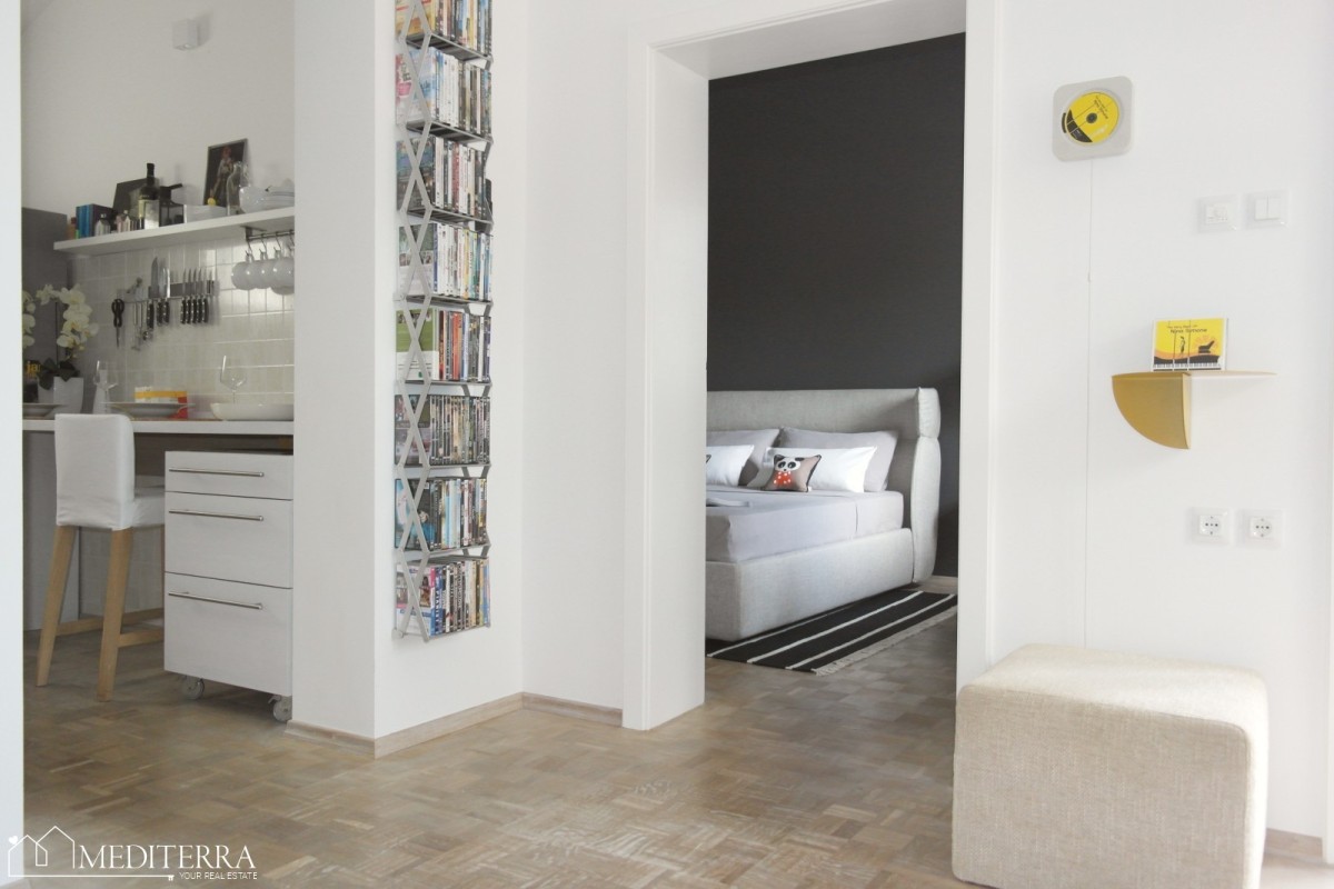 V pritličju je stanovanje s hodnikom, kuhinjo, spalnico in kopalnico. Poleg tega je dodatna prostorna kopalnica s pralnico in shrambo.