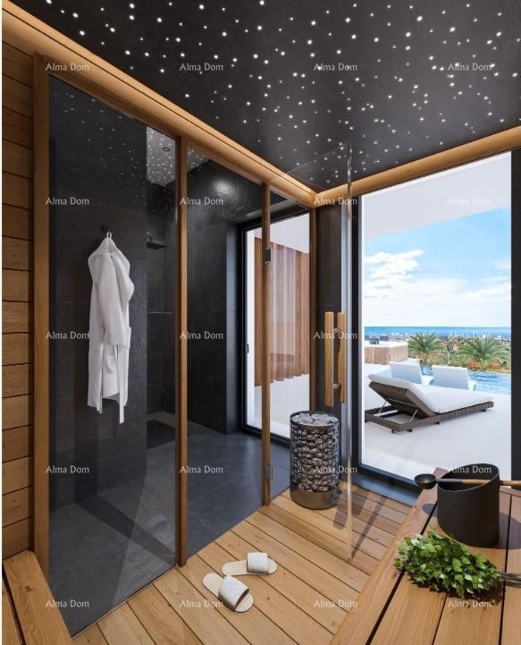 Neskončni bazen je središče te moderne vile, ki ustvarja iluzijo zlitja vode z nebom ali morjem v daljavi. Ena od sten bazena je izdelana iz prozornega stekla, ki ustvarja edinstven vizualni učinek. Poleg samega bazena, ločenega le s prozornim steklom, je kurišče, še en očarljiv dodatek, ki dopolnjuje ambient vile. Ognjišče, ki se nahaja na nivoju bazena, zagotavlja toplino in romantično vzdušje ter ustvarja popoln prostor za druženje in sprostitev. Zvečer se blesk plamena odbija od steklene stene bazena in ustvarja očarljivo igro svetlobe. Za popolno doživetje se bodo bodoči lastniki lahko sprostili v elegantni savni z zvezdnatim nebom ali uživali v opojnem doživetju zunanjega jacuzzija.