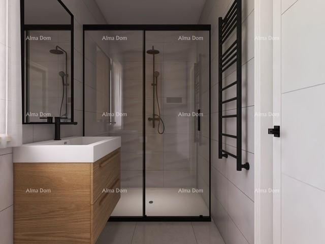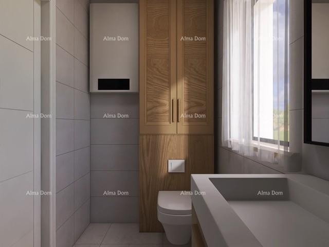 Sestavljena je iz vhoda, kuhinje, jedilnice, dnevne sobe, ene spalnice, kopalnice in dodatnega prostora/pralnice. Iz dnevne sobe je izhod na veliko teraso s poletno kuhinjo.