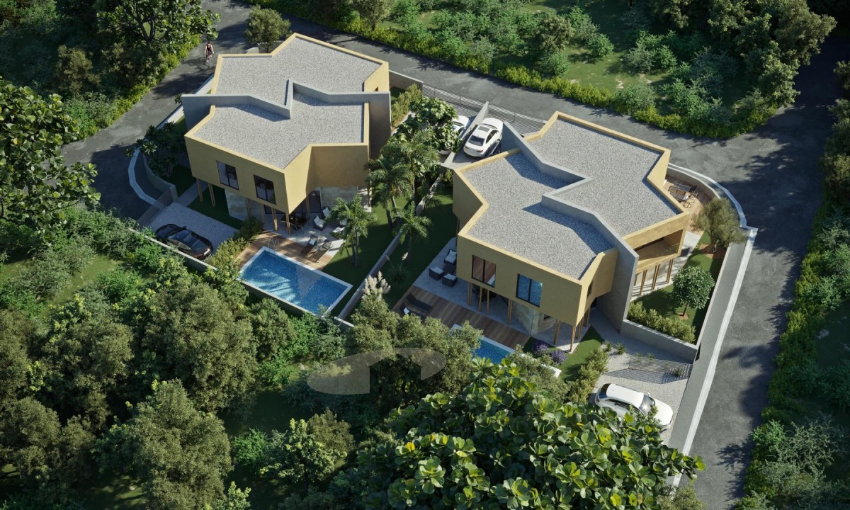 Le nekaj minut od slikovite Brtonigle je naprodaj moderno zasnovana dvojčka. V pritličju se nahajajo dnevna soba, stranišče in kuhinja z jedilnico. V prvem nadstropju so tri spalnice in dve kopalnici. Na dvorišču je bazen in prostor za dva avtomobila.