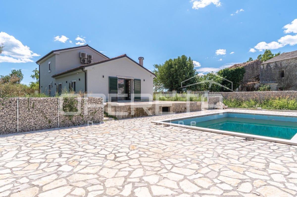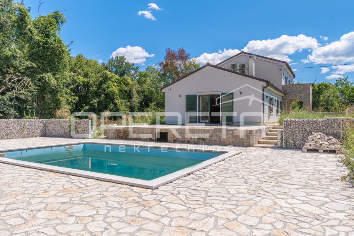 Urejena okolica ustvarja idilično okolje za sprostitev in zabavo. Tukaj se nahaja bazen s prostornim sončiliščem, idealen za uživanje v toplih dneh. Za ljubitelje druženja na prostem je na voljo tudi zunanja kuhinja z žarom, prostrana zelena površina ter tri zavarovana parkirna mesta.