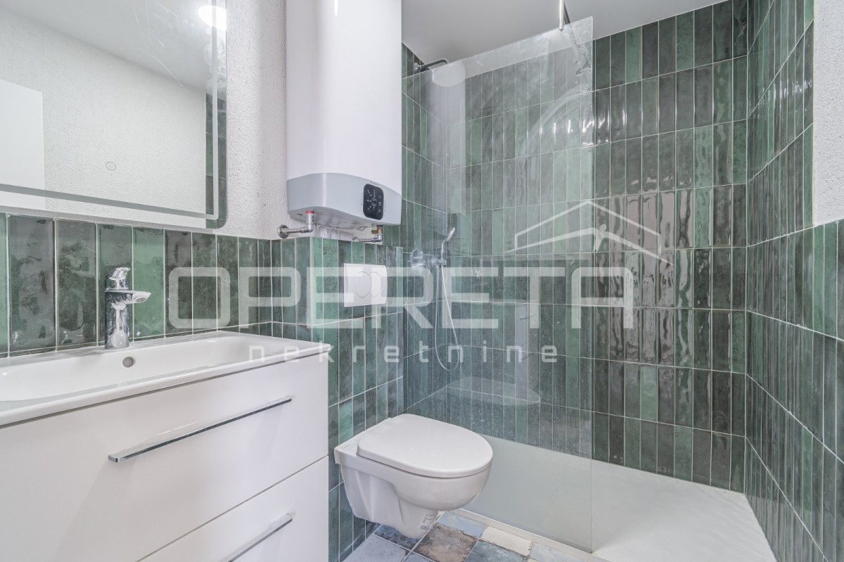 V nadstropju sta dve elegantni spalnici z velikimi zakonskimi posteljami, vsaka z lastno kopalnico, opremljeno z vrhunsko keramiko in moderno sanitarno opremo. Kopalnice so neposredno povezane s spalnicami, kar ustvarja eleganten in funkcionalen prostor. Iz hodnika je izhod na tradicionalni istrski balkon, s katerega se ponuja pomirjujoč pogled na dvorišče in okoliško zelenje.