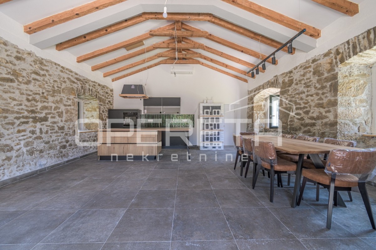 V srcu avtentične istrske vasi, obkrožena z nedotaknjeno naravo nedaleč od Motovuna, stoji ta skrbno adaptirana kamnita hiša, ki predstavlja popolno združitev tradicionalne istrske arhitekture in sodobnih življenjskih standardov. S 139 m² bivalne površine, ki se nahaja na prostorni parceli velikosti 971 m², nepremičnina ponuja popoln mir, zasebnost in sproščujoč pogled na gozd ter zeleno pokrajino.