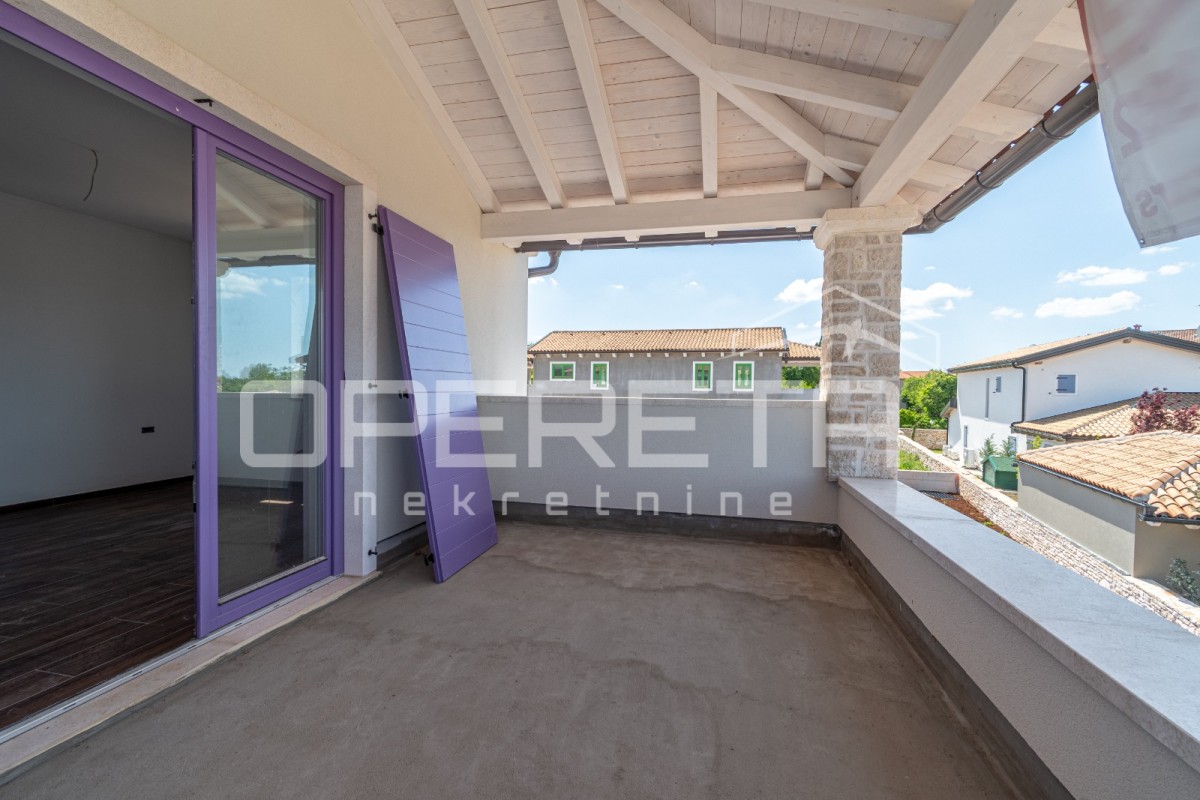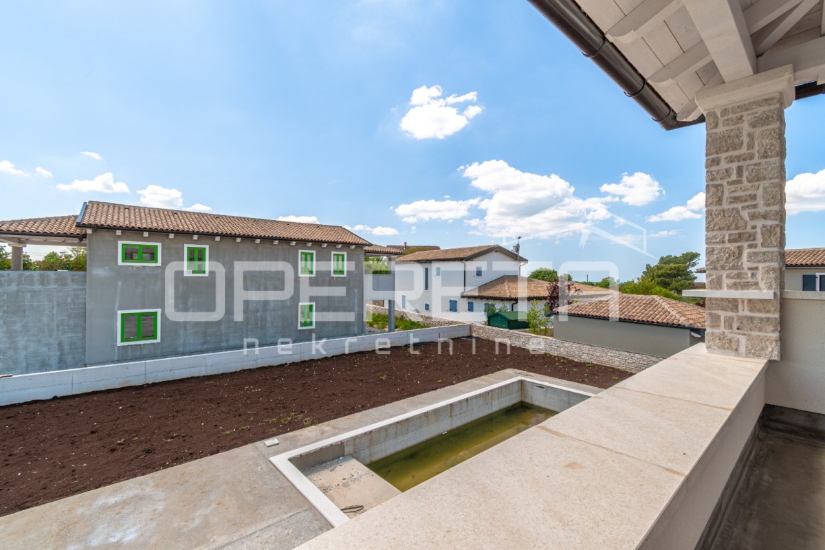 V prvem nadstropju so tri spalnice z dostopom do prostorne pokrite balkone v istrskem slogu (baladur), vsaka s svojo kopalnico in razgledom na morje.