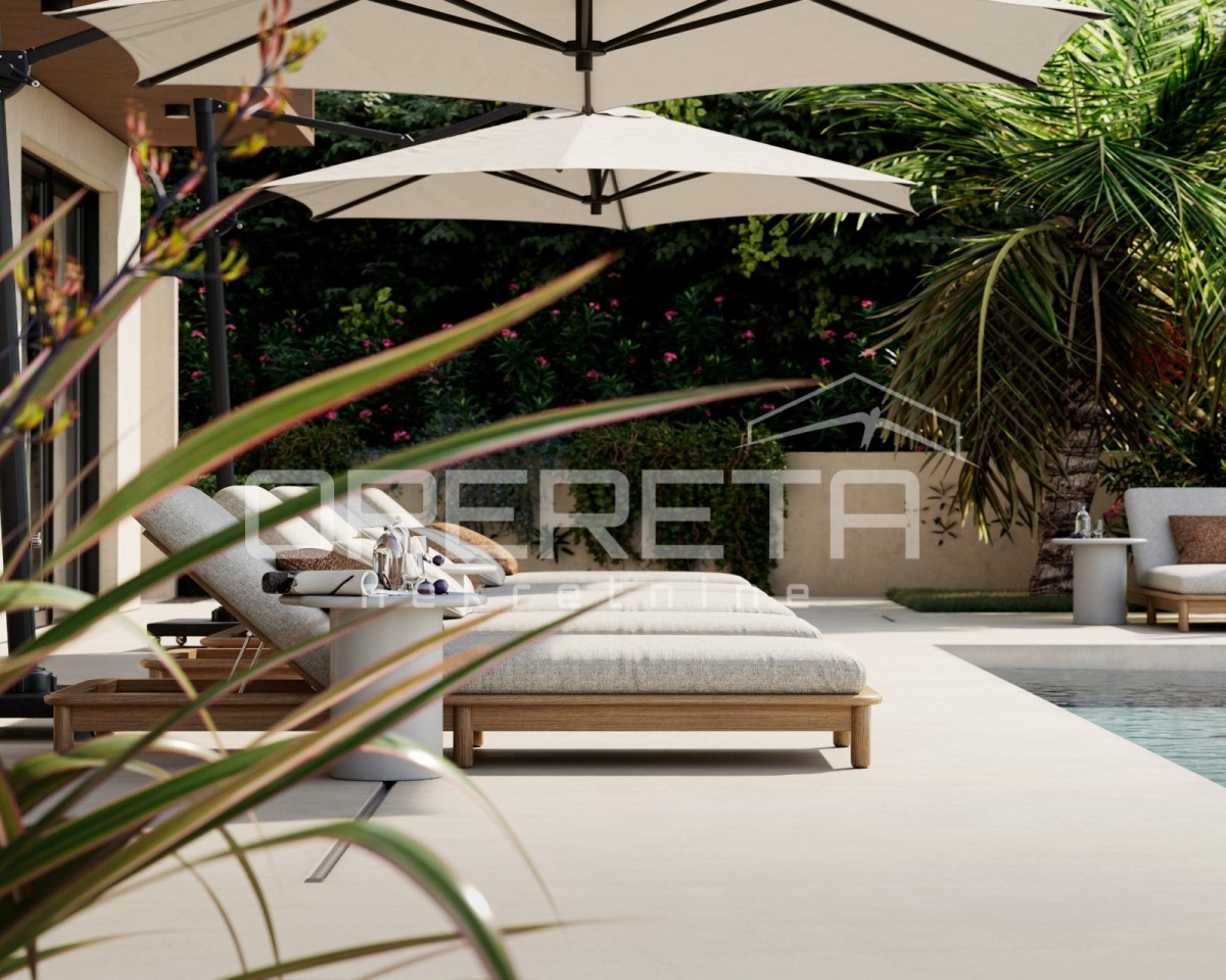 Eine freistehende Villa in einem Neubau steht in einer Anlage mit totale 9 Villan zum Verkauf, in great Lage, nur 1,5 km vom Meer entfernt.
