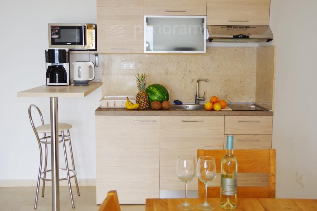 Trije manjši, enosobni apartmaji so sestavljeni iz kuhinje z jedilnico in dnevne sobe z izhodom na balkon z očarljivim pogledom na morje, na voljo pa so tudi spalnice z lastno kopalnico in WC za goste. V teh apartmajih lahko bivajo 2-4 osebe.
