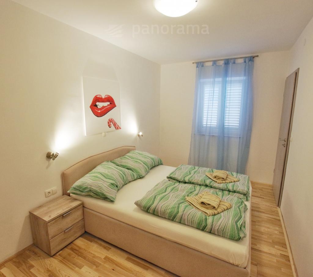 Ima skupno površino 450 m2, razteza se v 3 etažah in ima 6 stanovanj. Trije apartmaji so sestavljeni iz opremljene kuhinje z jedilnico in dnevne sobe, iz katere je izhod na prostoren balkon z nepozabnim pogledom na morje in zelenje. Na voljo sta tudi dve spalnici, dve kopalnici in WC za goste. Ti večji dvosobni apartmaji lahko sprejmejo 4-6 gostov.