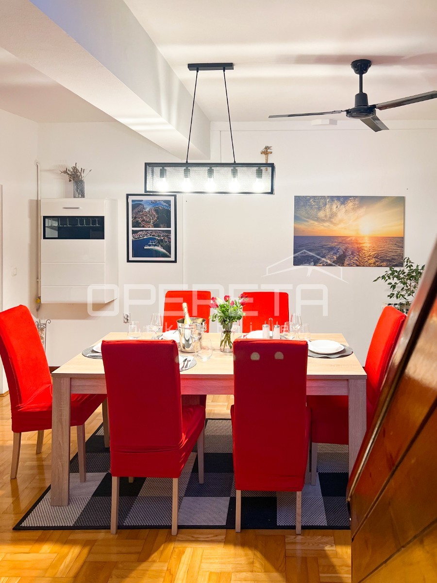Hiša je opremljena s plinskim centralnim ogrevanjem (mestni plin), celotna hiša pa je klimatizirana in popolnoma opremljena za turistični najem, iz česar se ustvarja lep dohodek. Hiša ima tudi lastno garažo.
