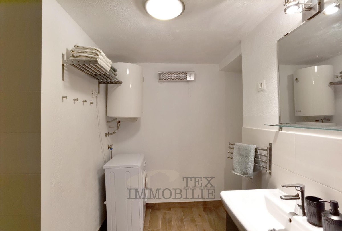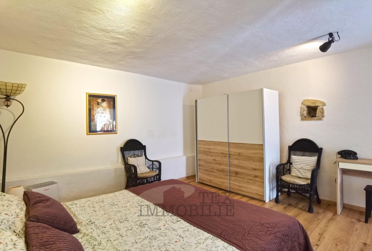 Notranjost hiše izžareva toplino in sklad rustikalnih ter sodobnih elementov. Lesena tla, tramovi in kamnite stene dajejo avtentičnost, svetli toni pa ustvarjajo občutek zračnosti in miru. Prostor obsega odprt dnevni prostor s kuhinjo in jedilnico, dve udobni spalnici ter moderno kopalnico s prho walk-in.