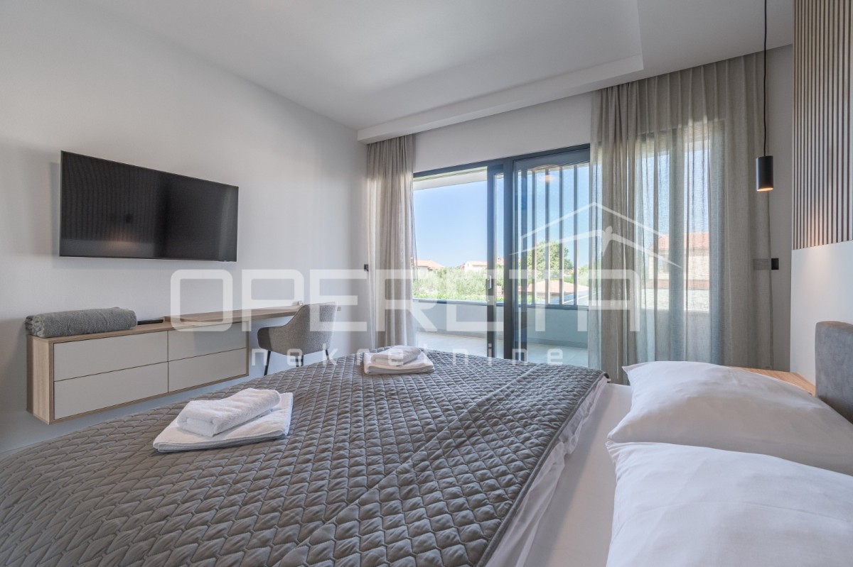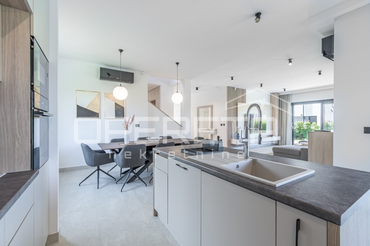 Predstavljamo vam redko priložnost za lastništvo elegantne, popolnoma opremljene in nove vile, ki se nahaja v mirni oazi na obrobju Poreča. Ta izjemna nepremičnina, s skupno površino 218 m², je popolna sinergija luksuznega družinskega doma in vrhunske naložbe v turizem.