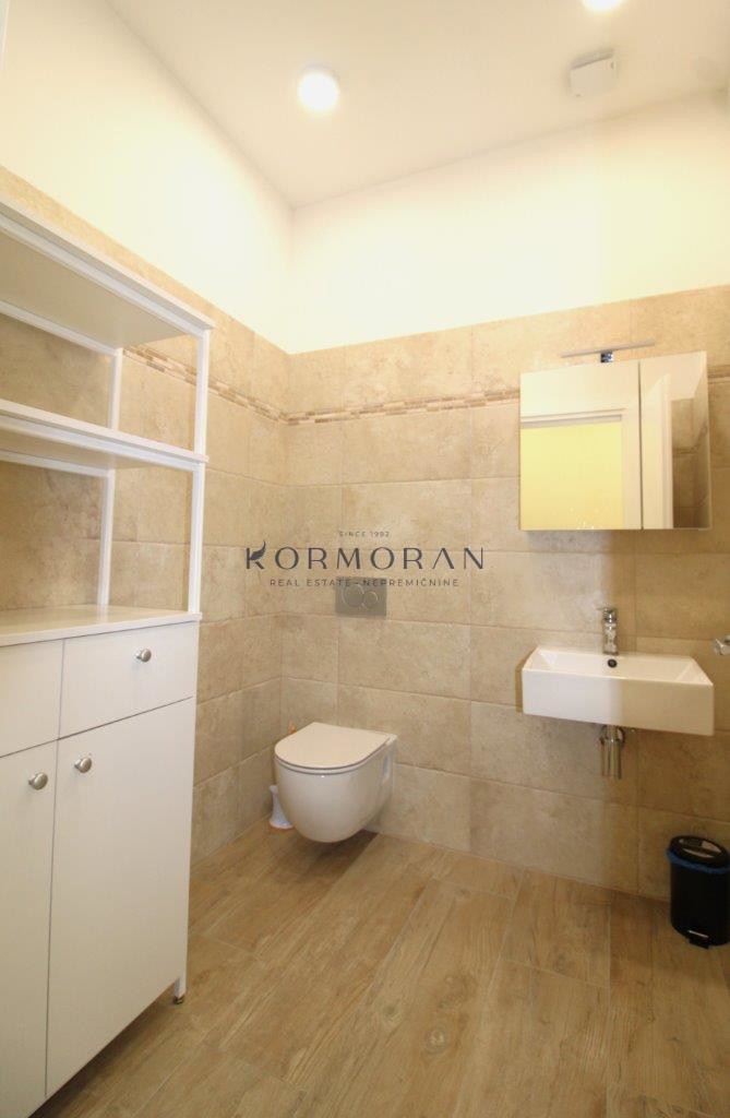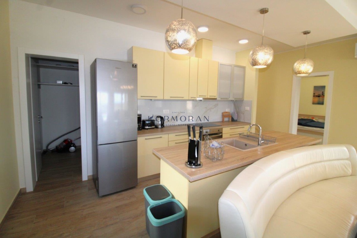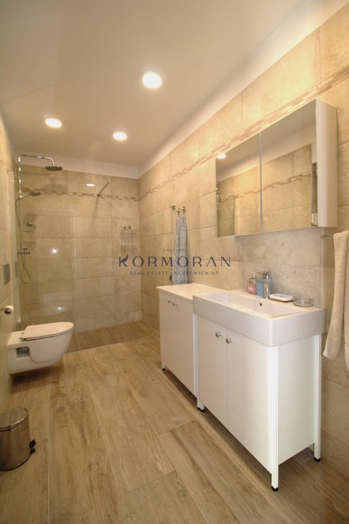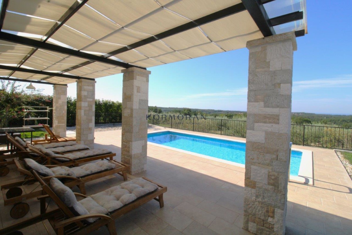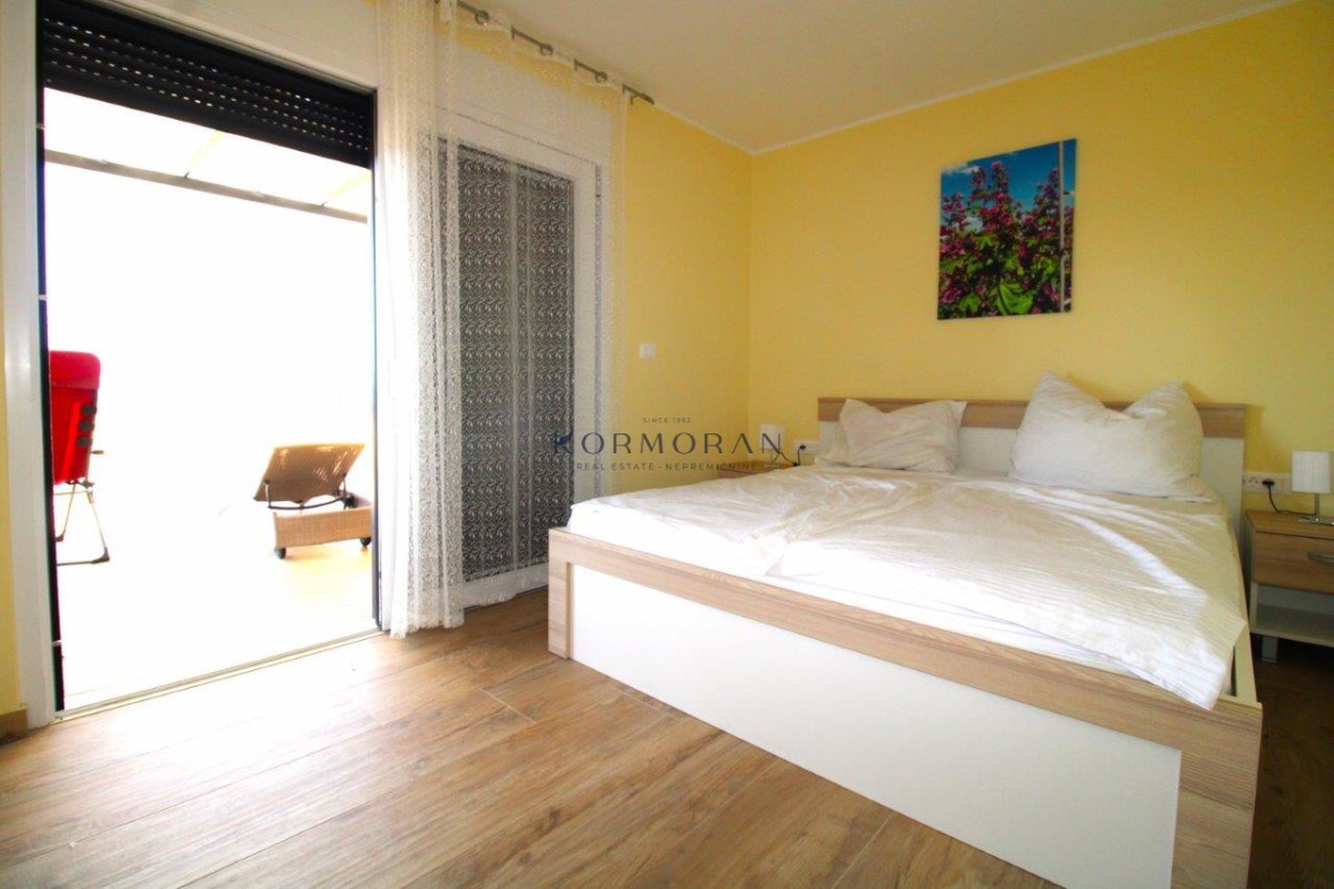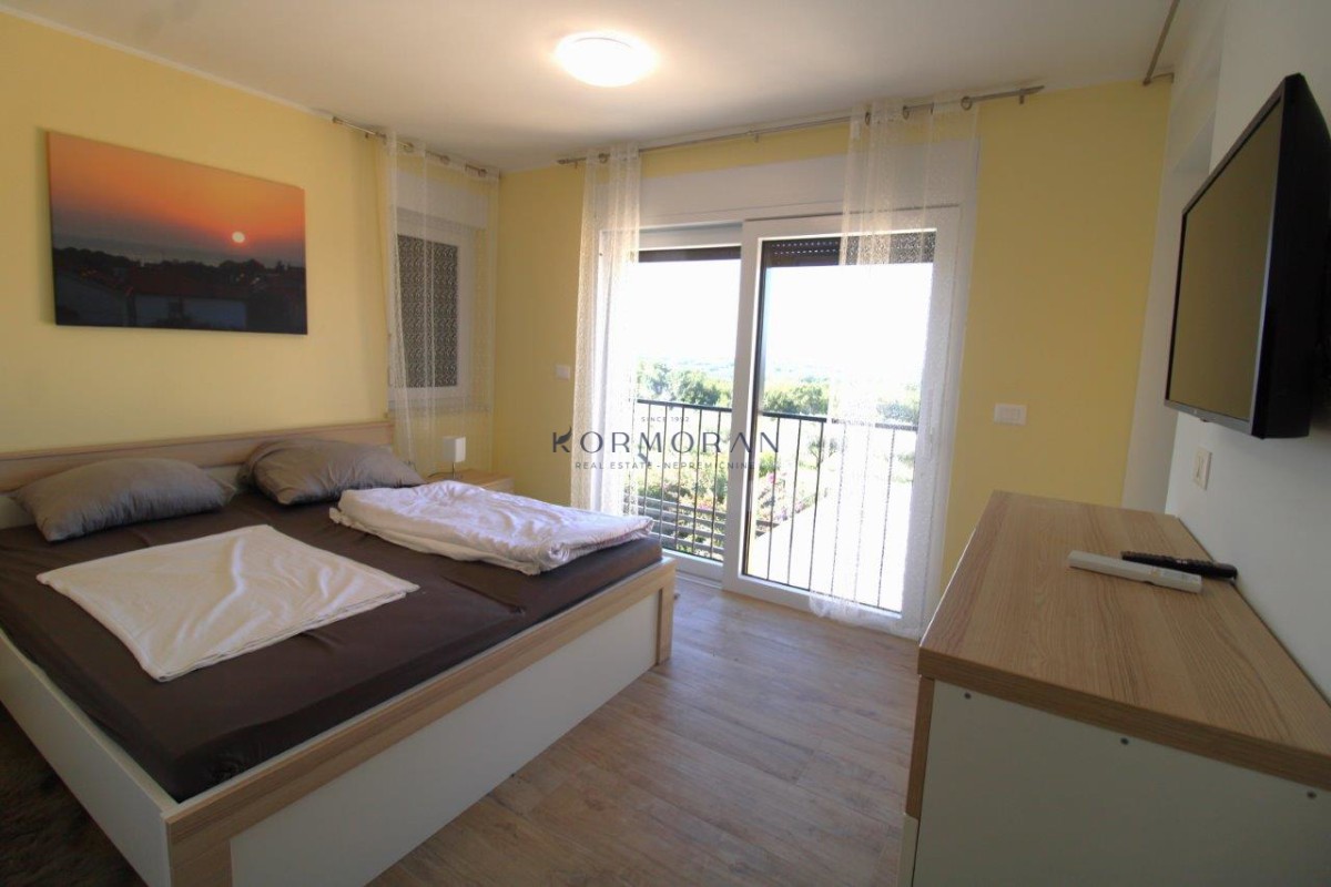 Sestoji iz pritličja, kjer je spalnica z lastno kopalnico, WC, tehnični prostor, kuhinja, shramba, jedilnica in dnevna soba z veliko naravne svetlobe zaradi steklenih sten, ki vodijo navzven. velika terasa s panoramskim pogledom na morje in čudovito udobno letno kuhinjo z naravnim kamnom in ima vgrajen žar, peč in sivko.