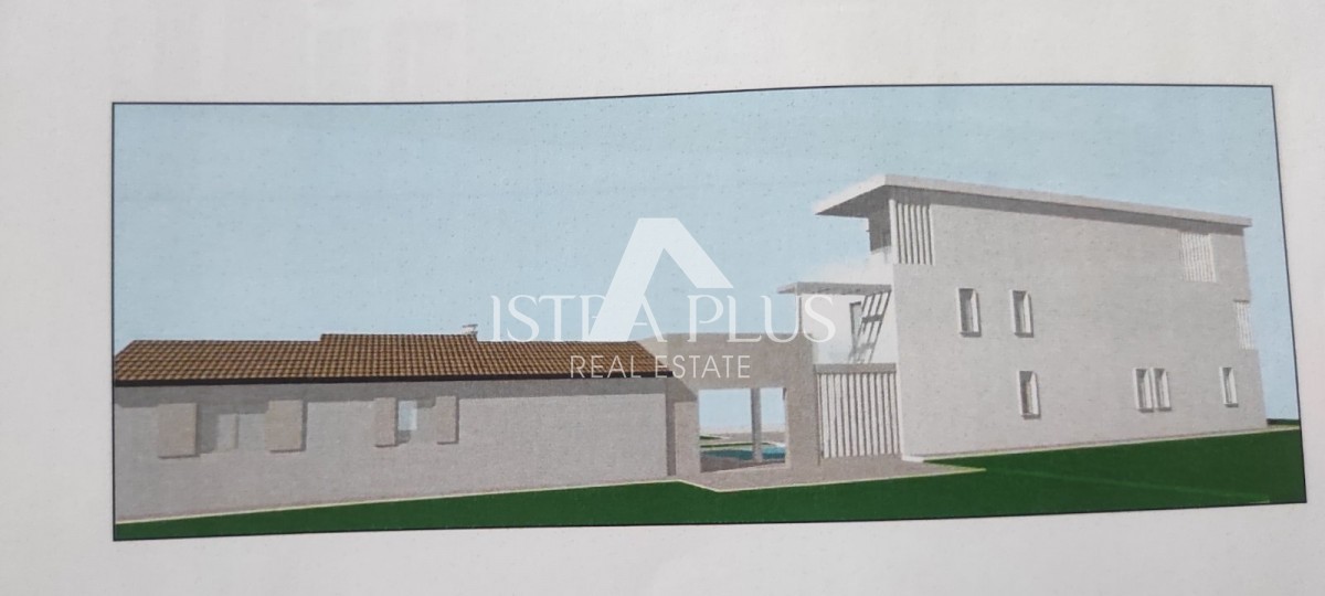 Prodamo enonadstropno hišo z bazenom in zemljiščem s projektom v okolici Poreča, cca. 7 kilometrov.