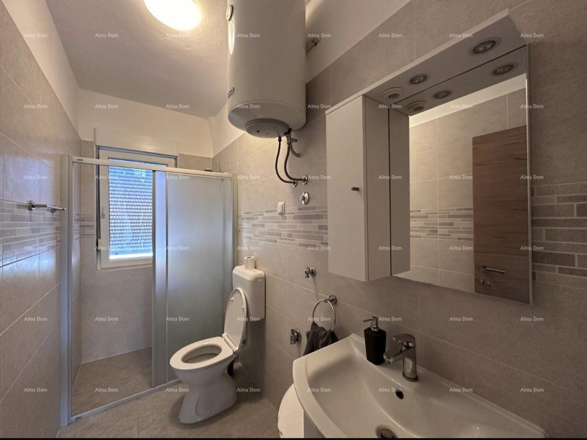 V prvem nadstropju hiše je stanovanje velikosti 109 m2, ki ga sestavljajo predprostor, tri spalnice, kopalnica, prostorna dnevna soba in kuhinja z jedilnico ter velika terasa 20 m2.