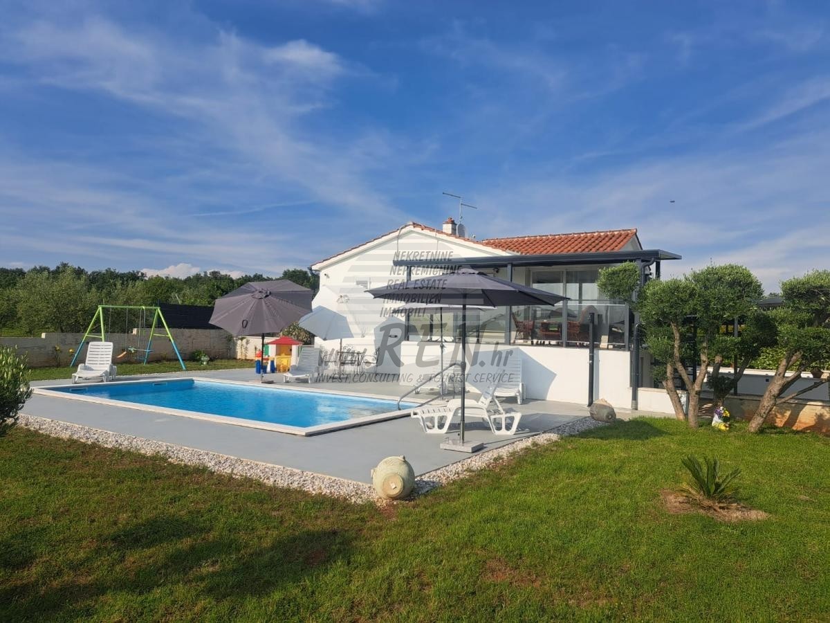 V mirni in idilični okolici, le nekaj minut od Porečna, se nahaja ta čudovita enonadstropna hiša s površino 100 m², obkrožena z obsežnim 3.000 m² velikim zemljiščem, večinoma posajenim z oljkami. Nepremagljiva lokacija – le nekaj minut od avtoceste in mesta Poreč – ponuja popoln balance med mirnim bivanjem, tišino in odlično prometno povezavo.