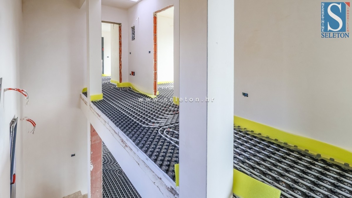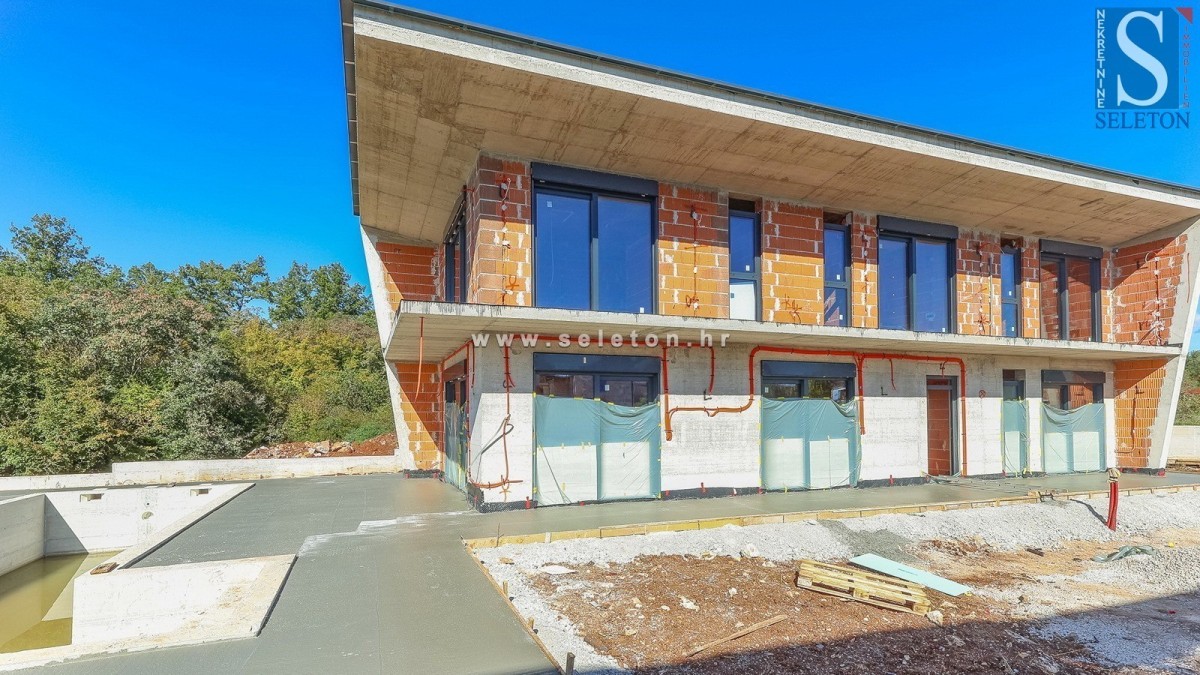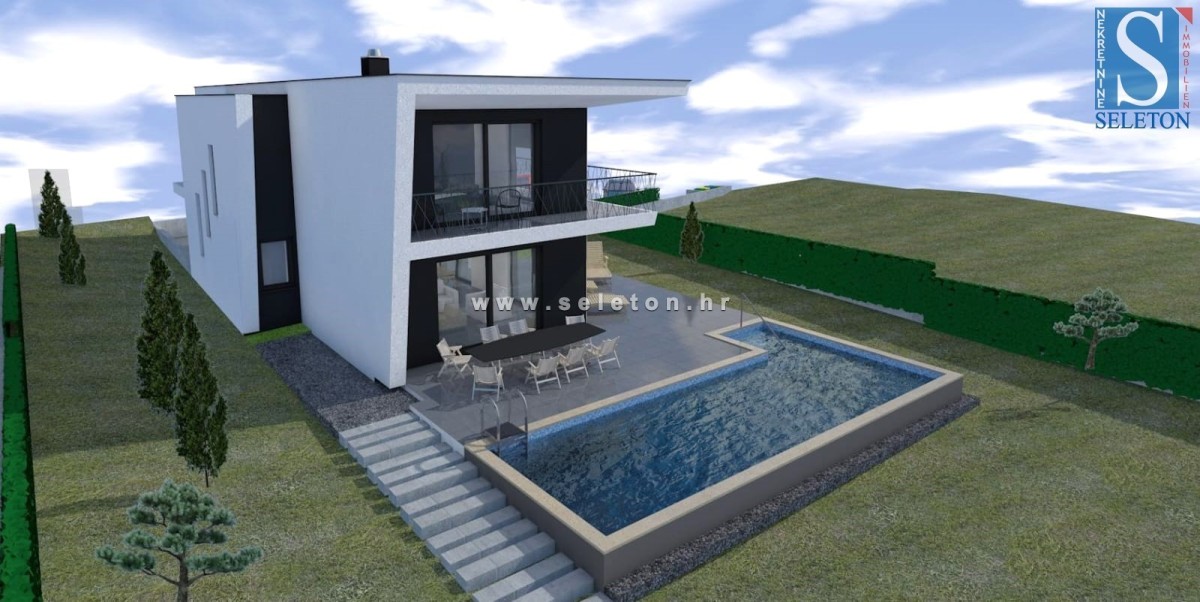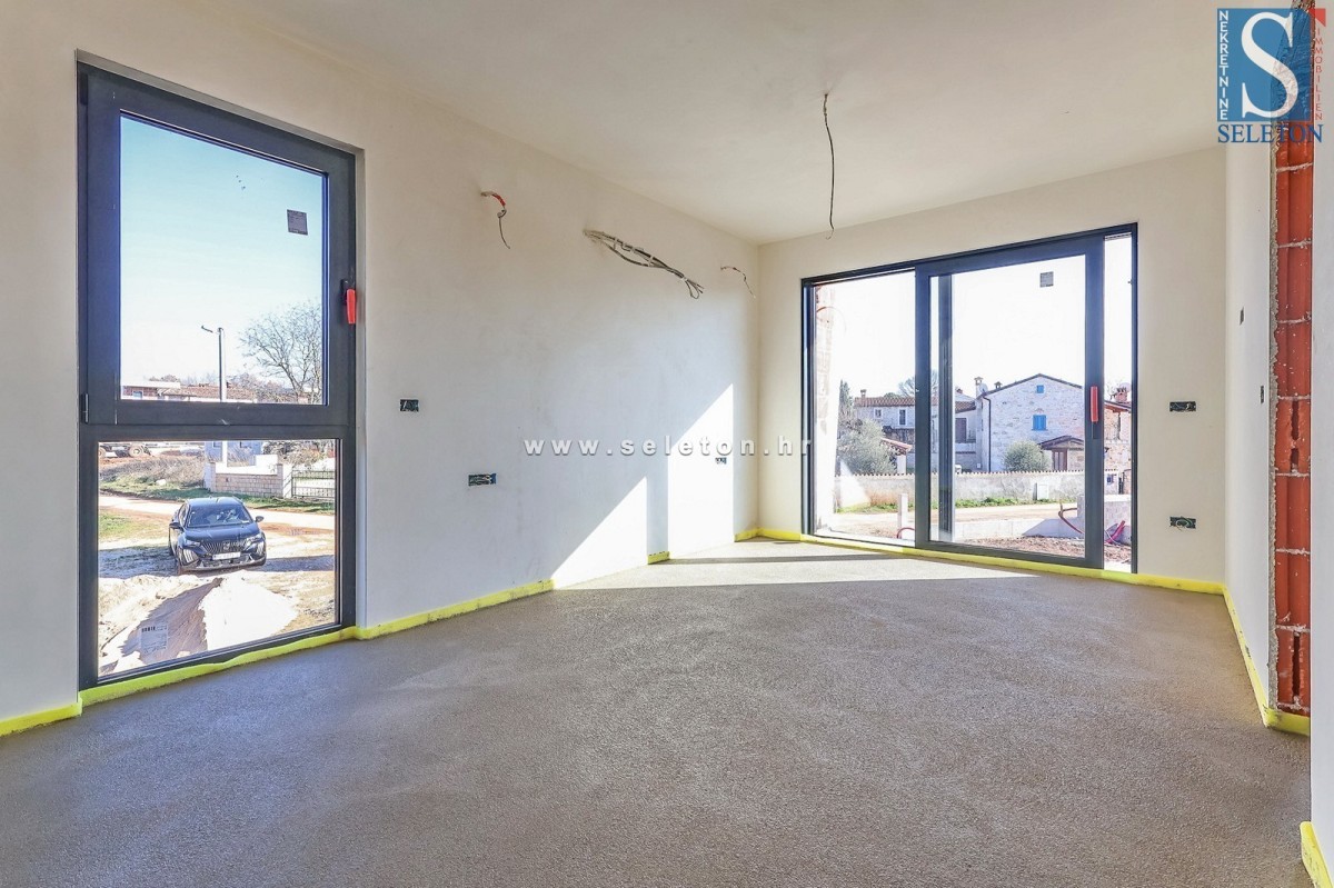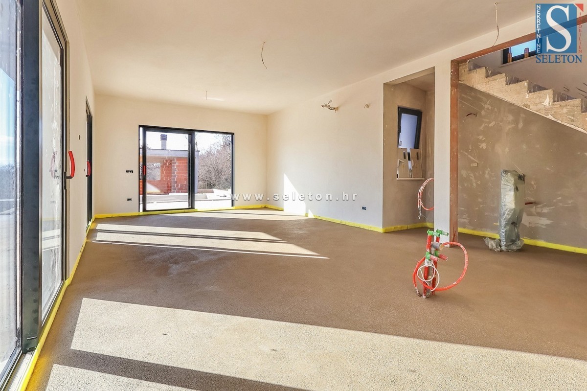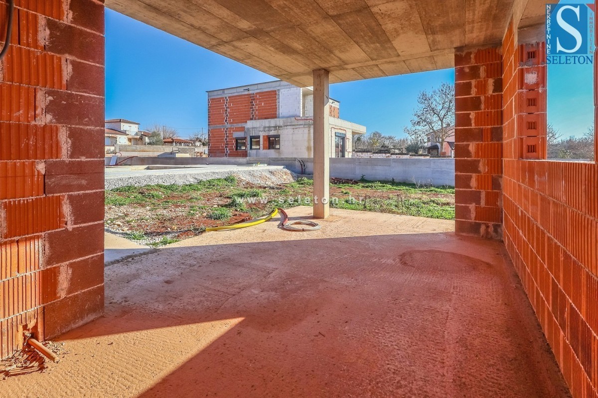 Prodamo samostojno hišo s skupno površino 243 m², sestavljeno iz dnevne sobe, kuhinje, jedilnice, terase, delovne/tehnične sobe, WC-a za goste in spalnice s kopalnico v pritličju hiše, ter hodnik, tri spalnice s kopalnico in balkon v prvem nadstropju hiše. Hiša bo imela 36 m² velik bazen, 24 m² letno kuhinjo in 5 m² shrambo ob bazenu, talno ogrevanje, klimatsko napravo v vseh spalnicah in dnevni sobi, alarm, avtomatsko zalivanje vrta, video nadzor in 3 parkirna mesta. Hiša je zgrajena na zemljišču velikosti 1.080 m², nahaja se v naselju cca 12 km od morja/plaže in cca 11 km od Poreča.