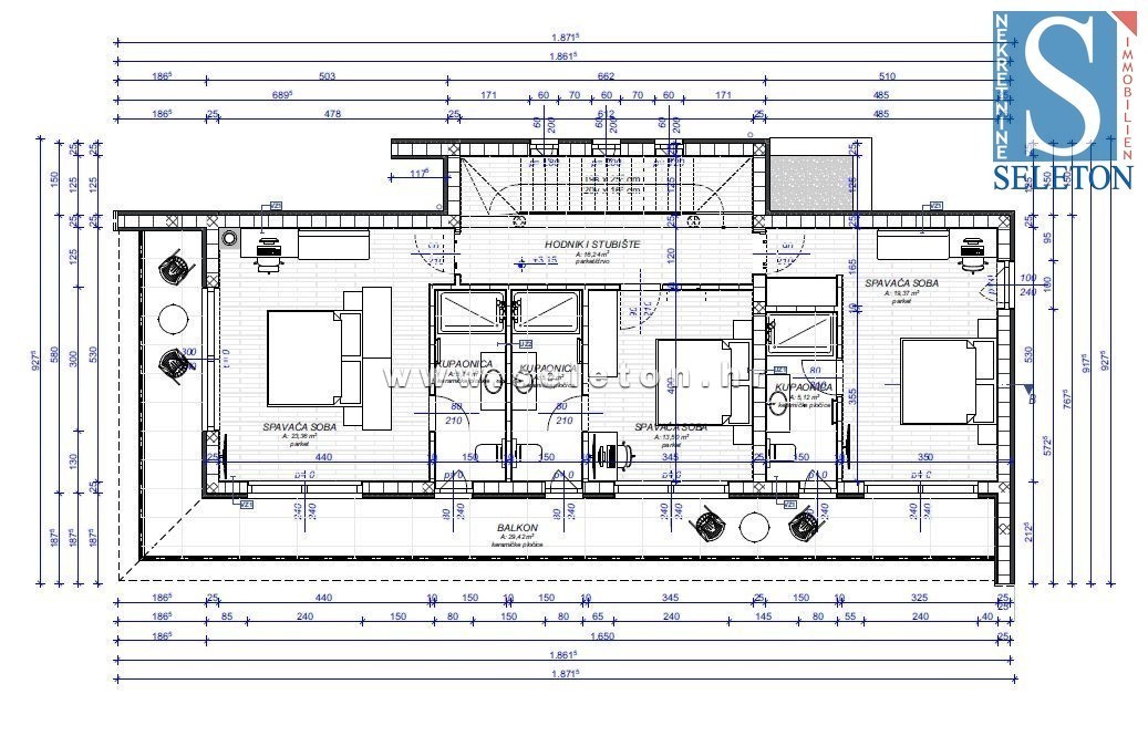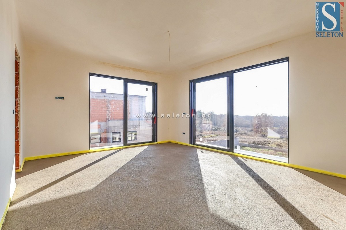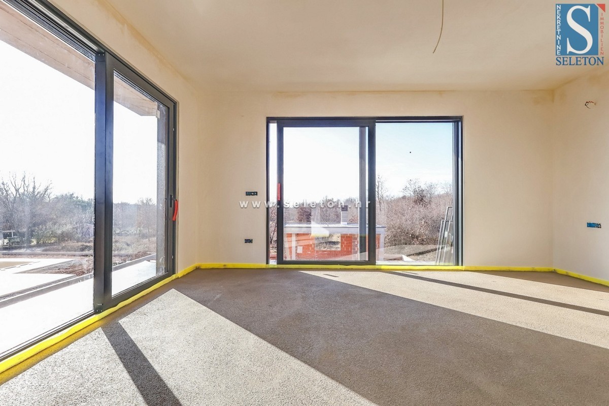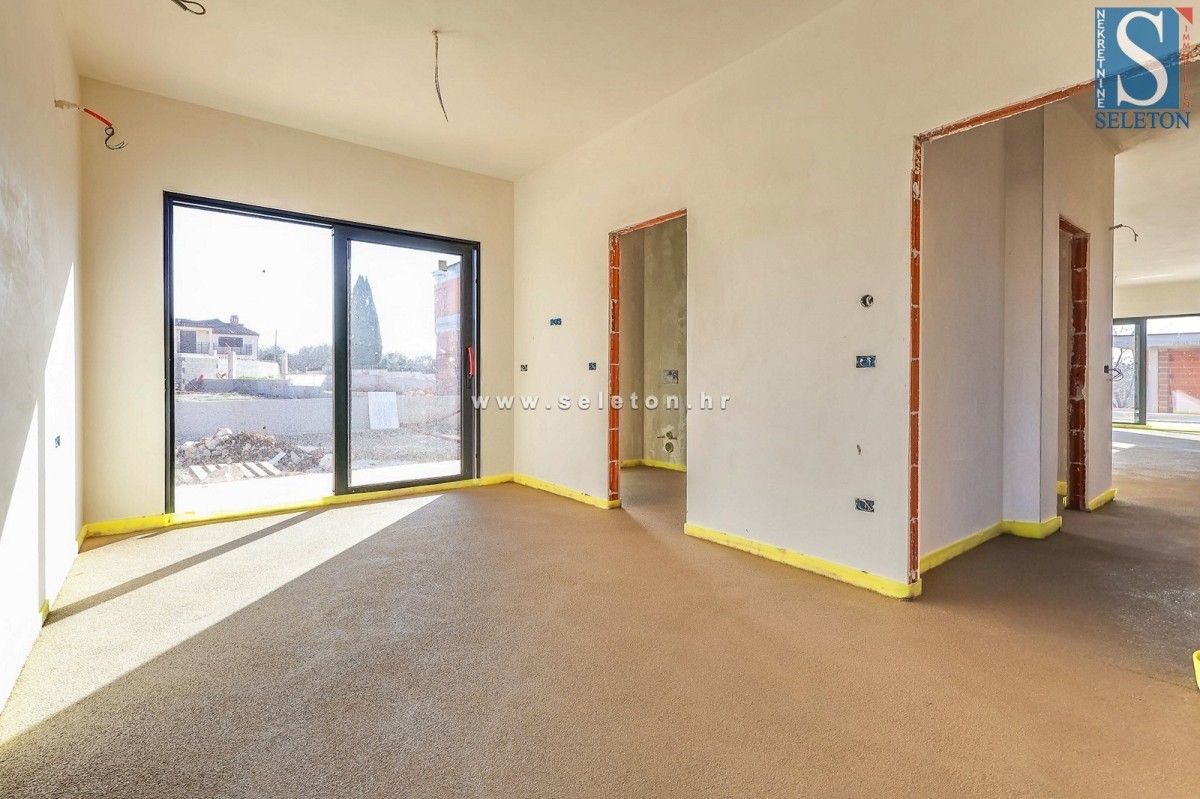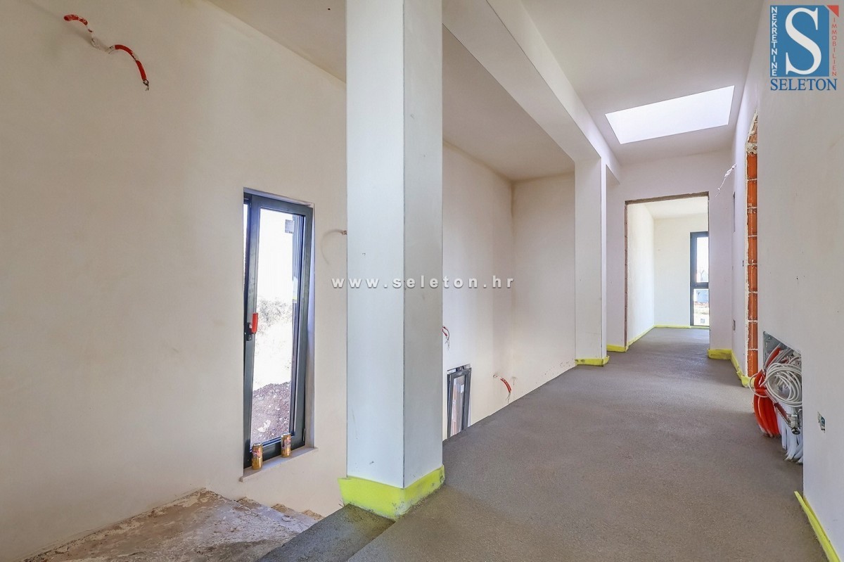Prodamo samostojno hišo s skupno površino 243 m², sestavljeno iz dnevne sobe, kuhinje, jedilnice, terase, delovne/tehnične sobe, WC-a za goste in spalnice s kopalnico v pritličju hiše, ter hodnik, tri spalnice s kopalnico in balkon v prvem nadstropju hiše. Hiša bo imela 36 m² velik bazen, 24 m² letno kuhinjo in 5 m² shrambo ob bazenu, talno ogrevanje, klimatsko napravo v vseh spalnicah in dnevni sobi, alarm, avtomatsko zalivanje vrta, video nadzor in 3 parkirna mesta. Hiša je zgrajena na zemljišču velikosti 1.080 m², nahaja se v naselju cca 12 km od morja/plaže in cca 11 km od Poreča.