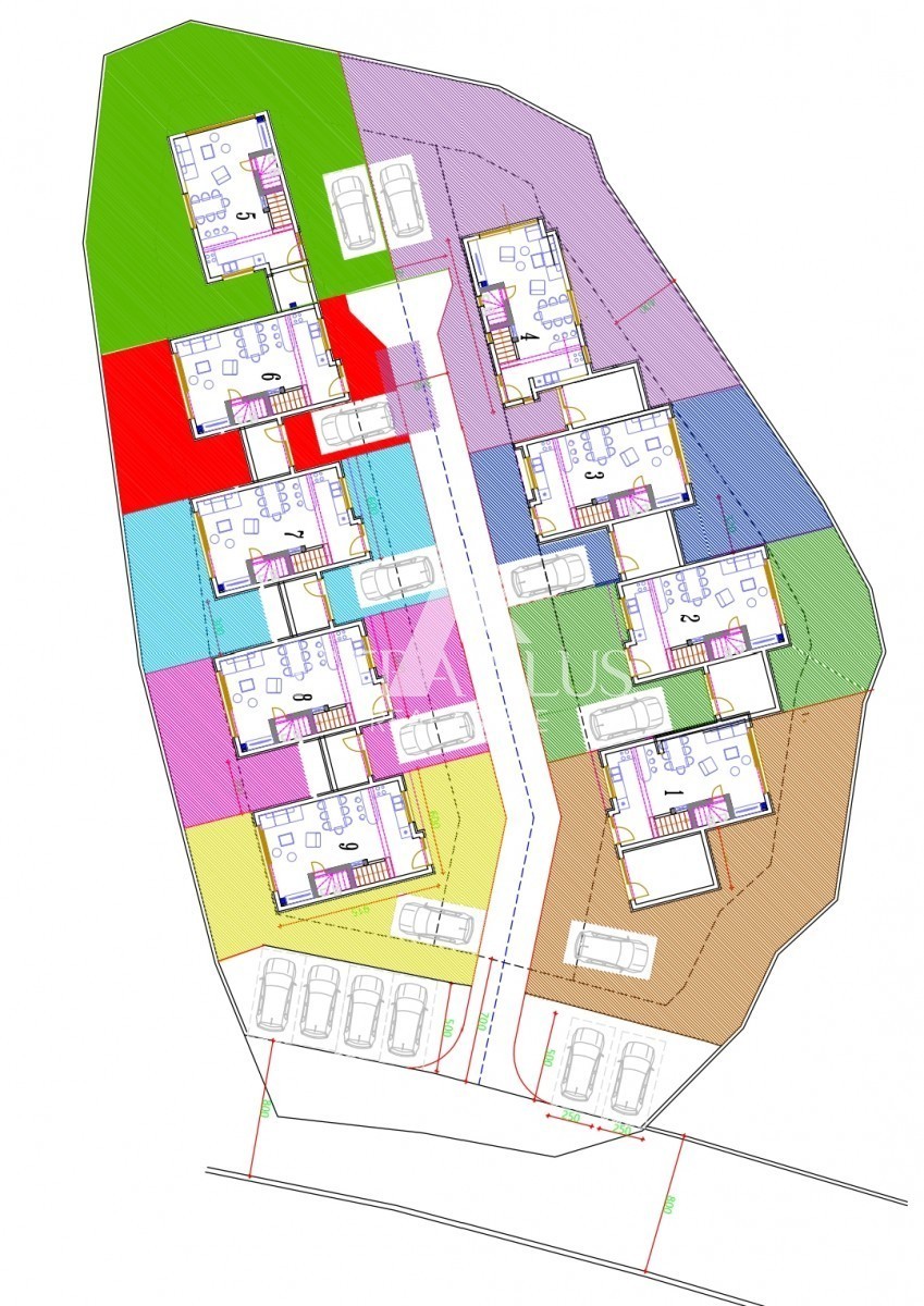 Predvidena gradnja obsega dve vrsti s skupno devetimi hišami, vsaka s površino 130 m².