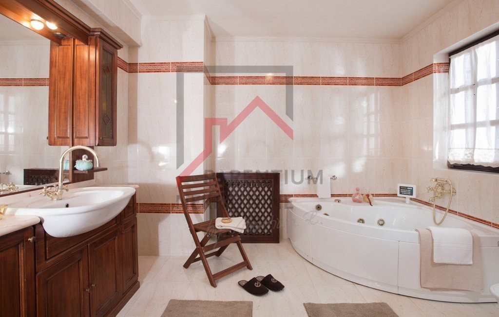 Hiša obsega 330 m² in izžareva eleganco in prostornost. V pritličju je ločena kuhinja, jedilnica in razkošna dnevna soba z visokimi stropi, ki ustvarjajo vtis zračnosti in razkošja. Na voljo so tudi tri prostorne spalnice in tri ločene kopalnice. V prvem nadstropju je ekskluzivna glavna spalnica, ločen prostor, ki je idealen za pisarno ali ustvarjalni kotiček, in dodatna shramba.