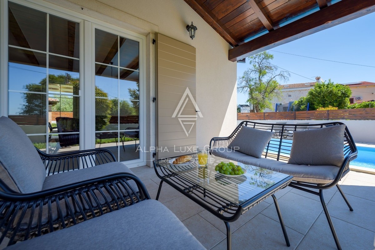 Ta sodobna vila se nahaja na mirni in dvignjeni lokaciji v bližini Svetega Lovreča ter ponuja prefinjeno kombinacijo zasebnosti, udobja in premišljene arhitekture. Postavljena je na zemljišču velikosti 457 m², razporejena v dveh etažah z funkcionalno zasnovo, ki je idealna za sodoben način bivanja.