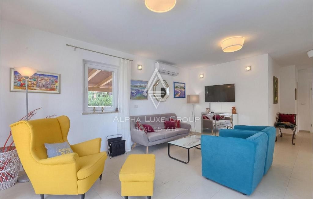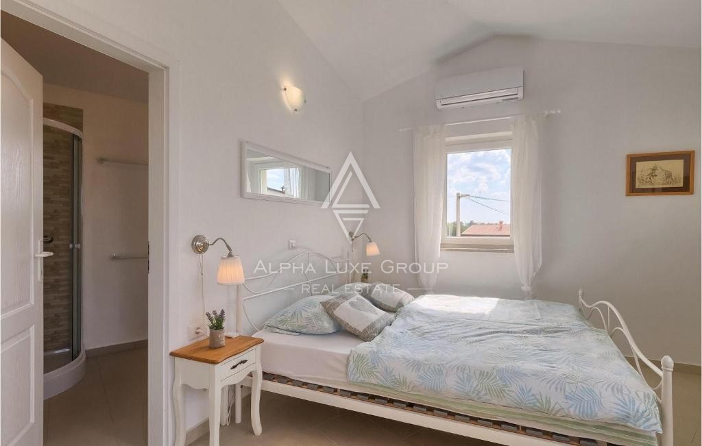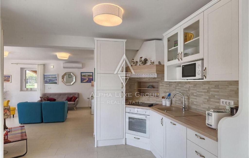 V mirnem predelu v bližini zgodovinskega mesteca Sveti Lovreč ta prijetna rezidenca ponuja uravnoteženo kombinacijo udobja, tradicionalnega istrskega šarma in sodobne funkcionalnosti. S svojo brezčasno arhitekturo in delno kamnito fasado se dom čudovito zlije z okoliško pokrajino vinogradov, oljčnikov in valovitih istrskih gričev.