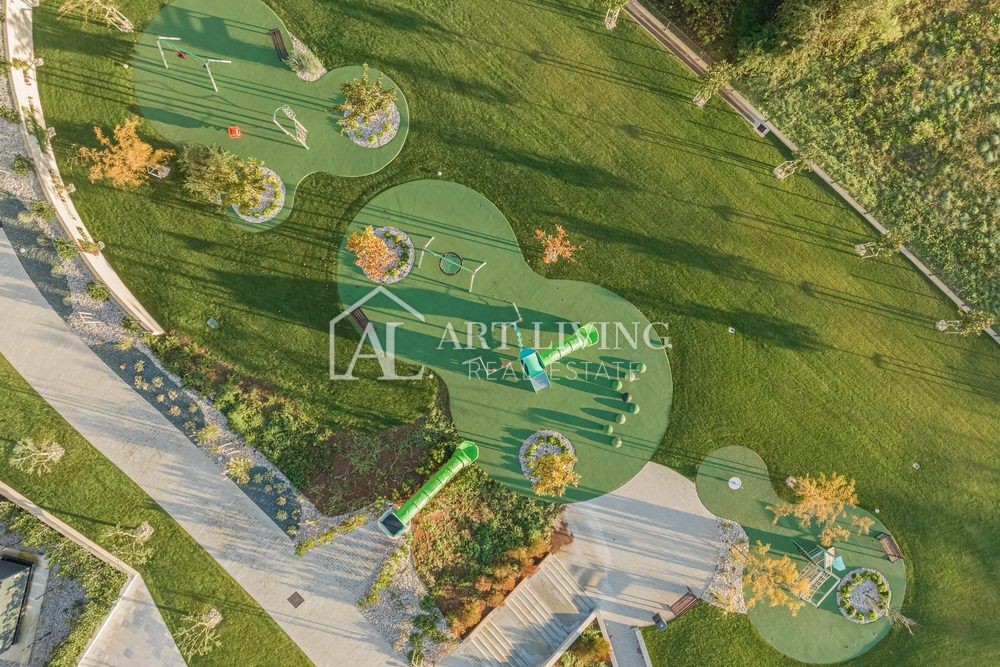Stanovanja odlikuje izjemna arhitekturna zasnova in vrhunski materiali: velike drsne steklene stene, toplotne črpalke, dizajnerska granitna keramika velikega formata priznanih blagovnih znamk, vrhunska sanitarna oprema in večslojni hrastov parket.