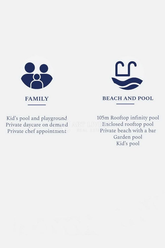 Letovišče je ograjeno in nudi videonadzor ter vzdrževalne storitve. Stanovalci imajo dostop do široke palete ugodnosti v letovišču: restavracije, trgovine, bari, igrišče za golf, telovadnica, wellness & SPA ter strešni neskončni bazen, ki ponuja edinstven panoramski pogled na morje in Savudrijski zaliv. Plaže so od letovišča oddaljene le 100 metrov.