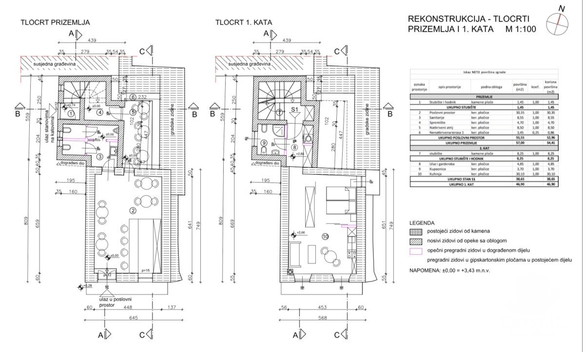 Pritličje: Prostor z dovoljenjem za gostinski objekt v izmeri 57 m² bruto površine, z možnostjo preureditve po želji – primerno za pisarno, studio, apartma ali drugo namembnost po izbiri.