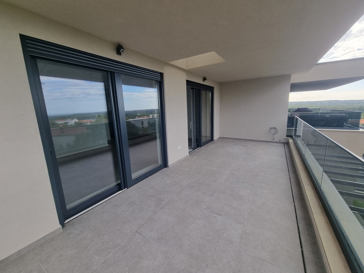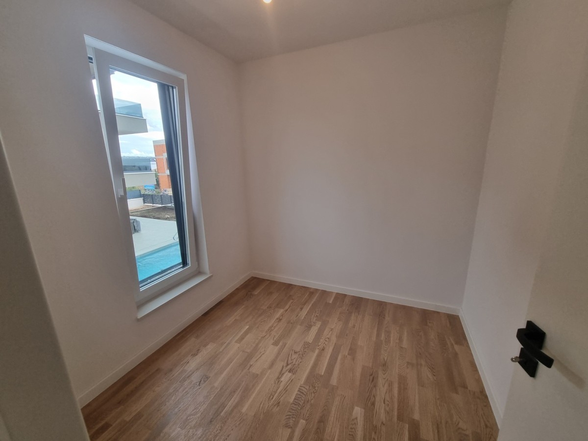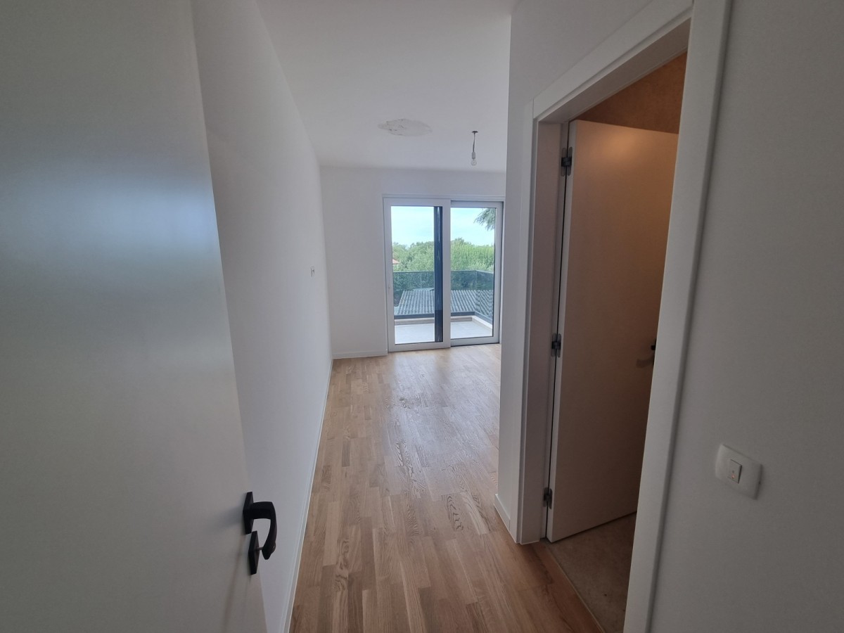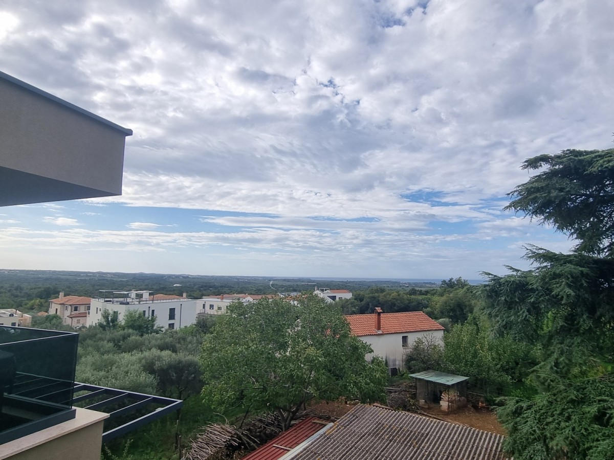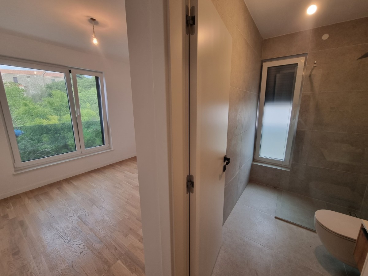 Notranje stopnice, ki bodo obrobljene s stopnicami iz masivnega hrastovega lesa, vodijo v drugo nadstropje, kjer sta dve spalnici, kopalnica, kuhinja z jedilno mizo in dnevna soba. Dnevna soba vodi na veliko pokrito teraso s čudovitim panoramskim pogledom na morje in okoliško naravo. Na tej lepi in veliki terasi velikosti 20,42m2 je električna energija uporabljena za namestitev jacuzzija.