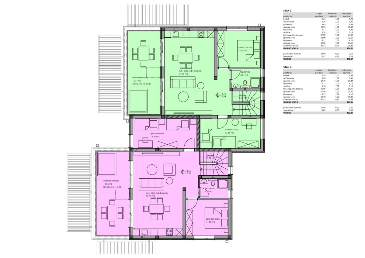Prodamo dvonadstropni apartma z oznako "STAND 3 ZELENE BOJE" velikosti 124,82 m2 s čudovitim pogledom na morje, ki je oddaljeno 3 km.