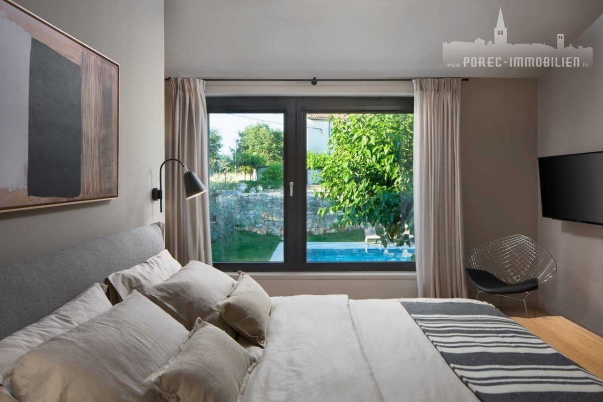 Ta čudovita kamnita vila se nahaja v majhni vasici v Istri, blizu Poreča. Gre za razkošno, popolnoma prenovljeno kamnito hišo z zasebnim bazenom, lepo negovanim vrtom in wellnessom, vključno s savno in notranjim jacuzzijem.