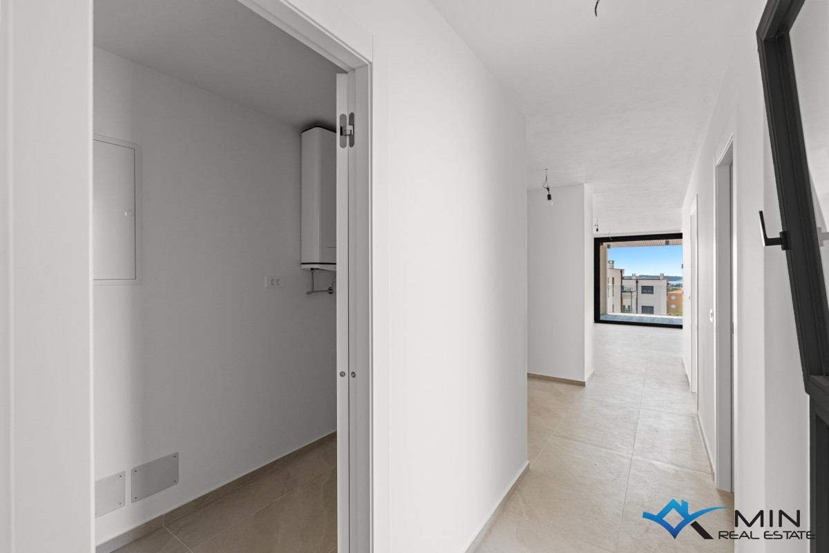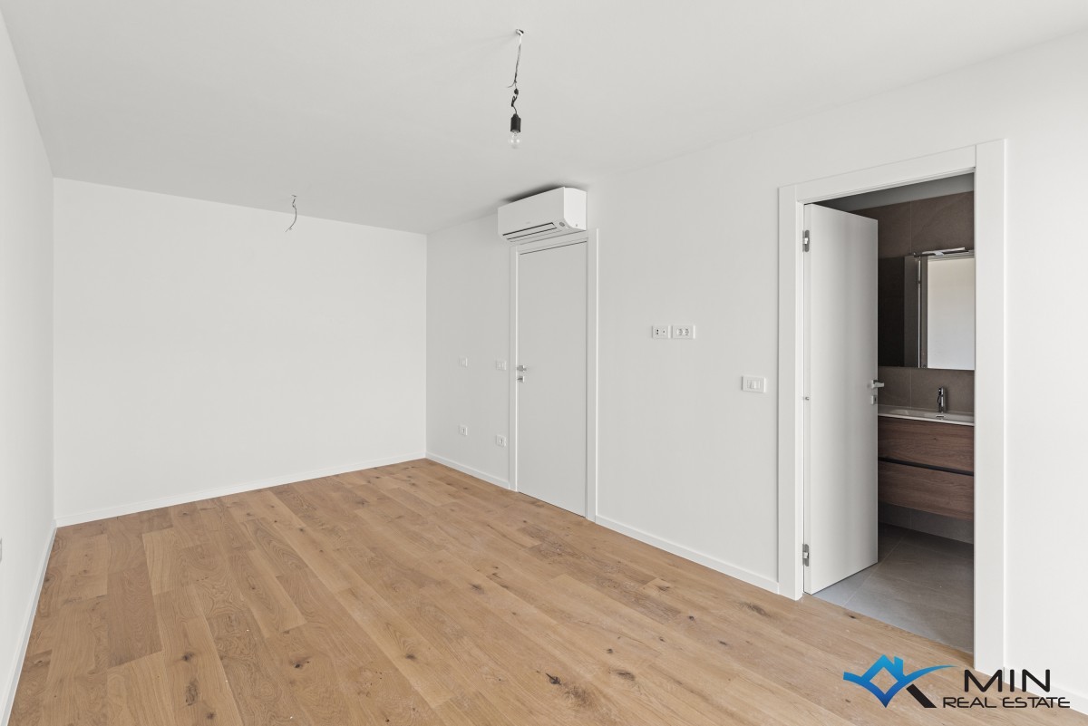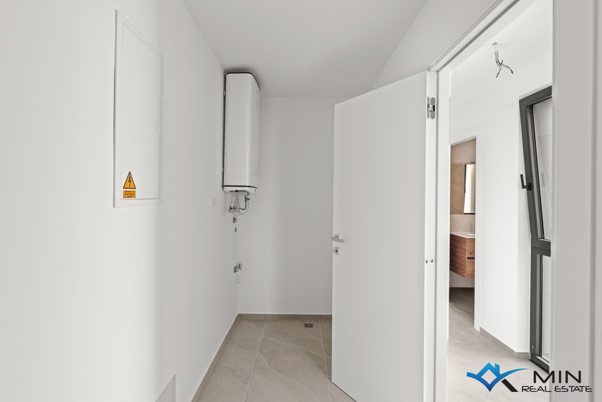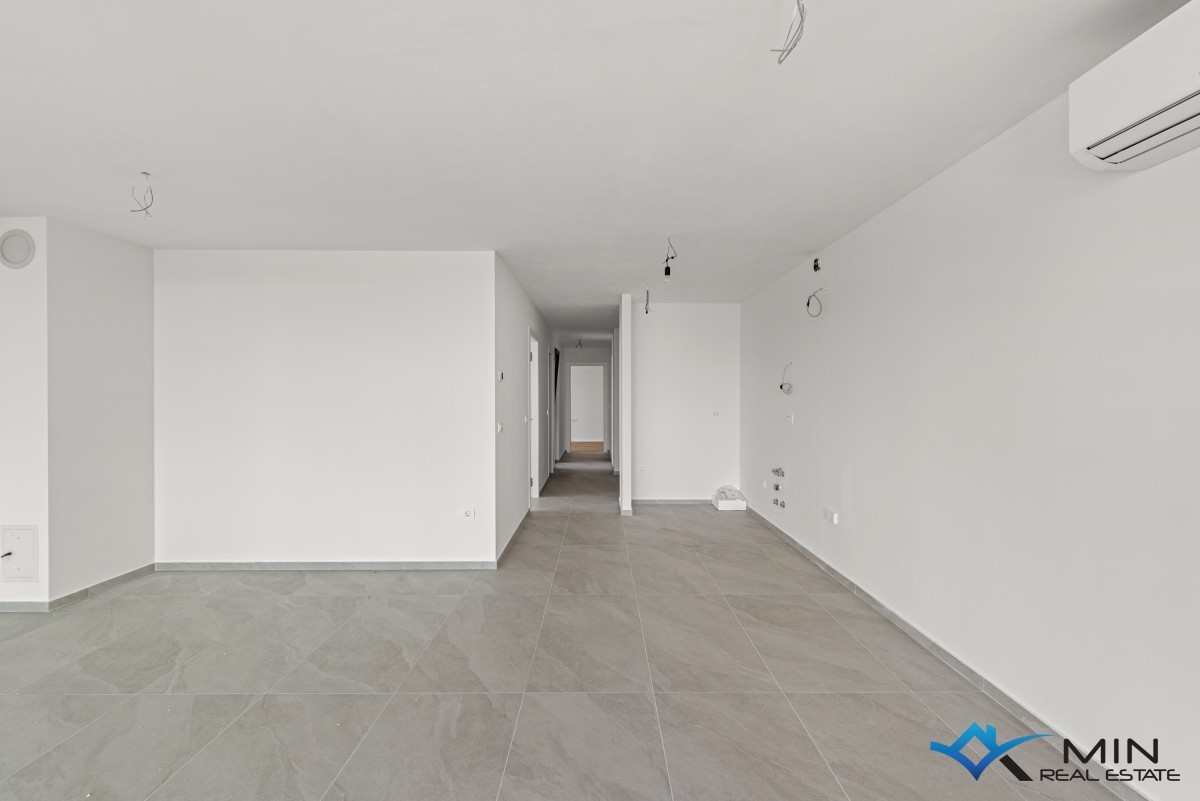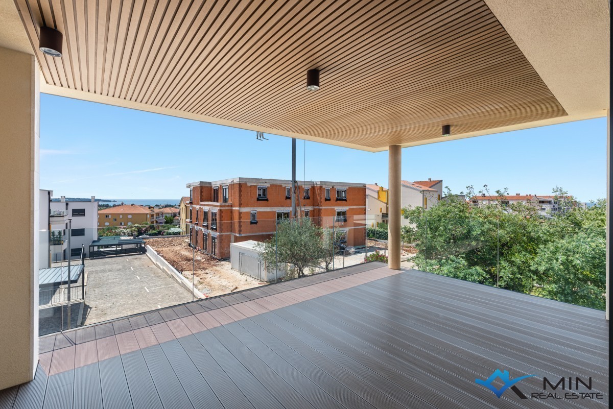 Prodamo stanovanje na zelo iskani lokaciji v Novigradu. Od morja in lepo urejene plaže je oddaljeno 900 m, od centra mesta pa 1200 m. Stanovanje se nahaja v 1. nadstropju kakovostno zgrajene stavbe z dvigalom, ki skupno obsega 8 stanovanj. Stanovanje meri 101 m2, od tega stanovanjski del pokriva 81,8 m2 (predsoba, shramba, garderoba, 2 kopalnici, 2 spalnici, kuhinja z jedilnico in dnevna soba). Stanovanju pripada pokrita terasa v velikosti 21,2 m2 (neto 10,6 m2) s pogledom na morje, shramba v velikosti 4,8 m2 (neto 3,6 m2) in parkirno mesto v velikosti 12,5 m2 (neto 2,5 m2). Stanovanje je opremljeno z električnim talnim gretjem, klimatsko napravo in kaminom. Stanovanje je opremljeno s keramiko 1. razreda, sanitarna keramika v kopalnicah pa je priznanih proizvajalcev. Stanovanje lahko uporabljate za bivanje ali v turistične namene.