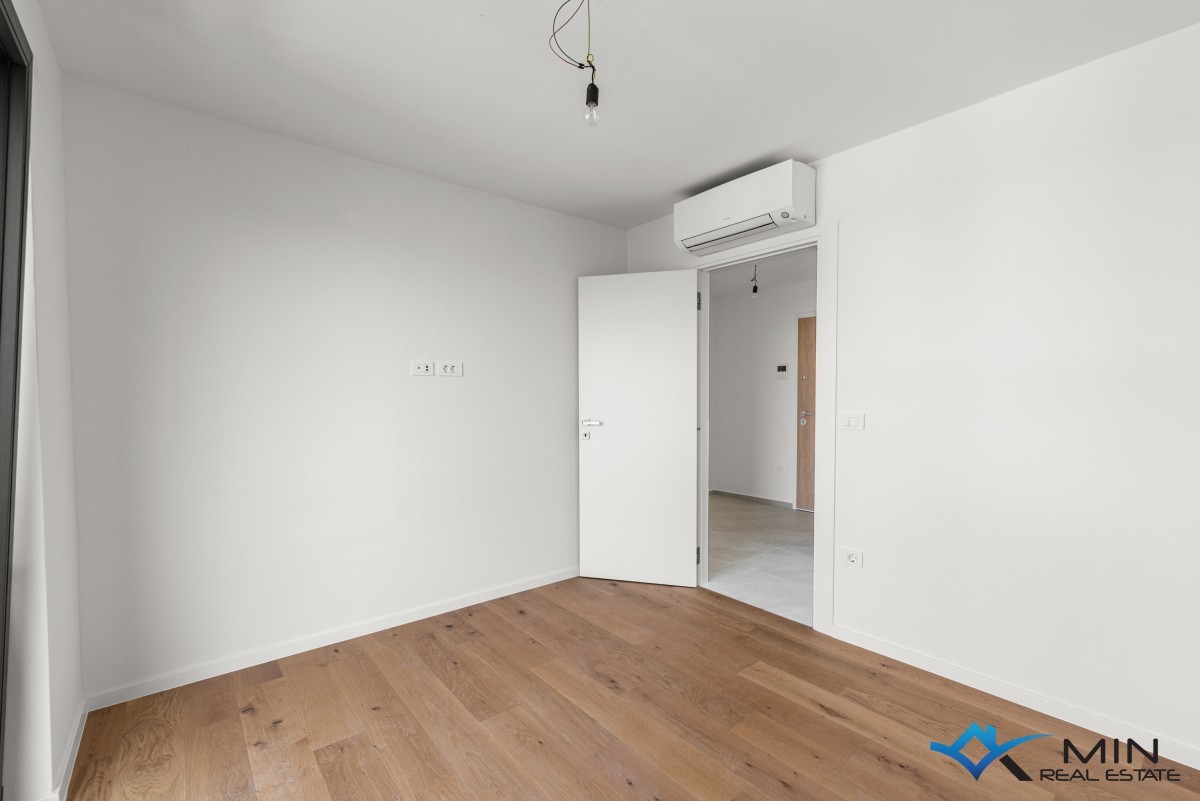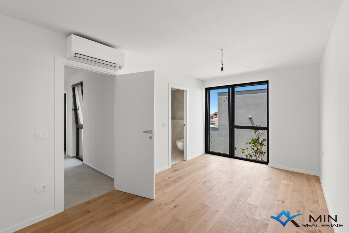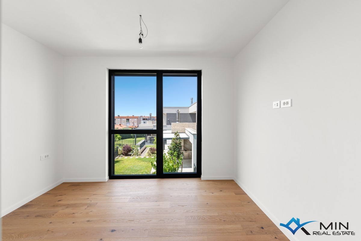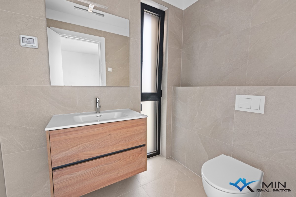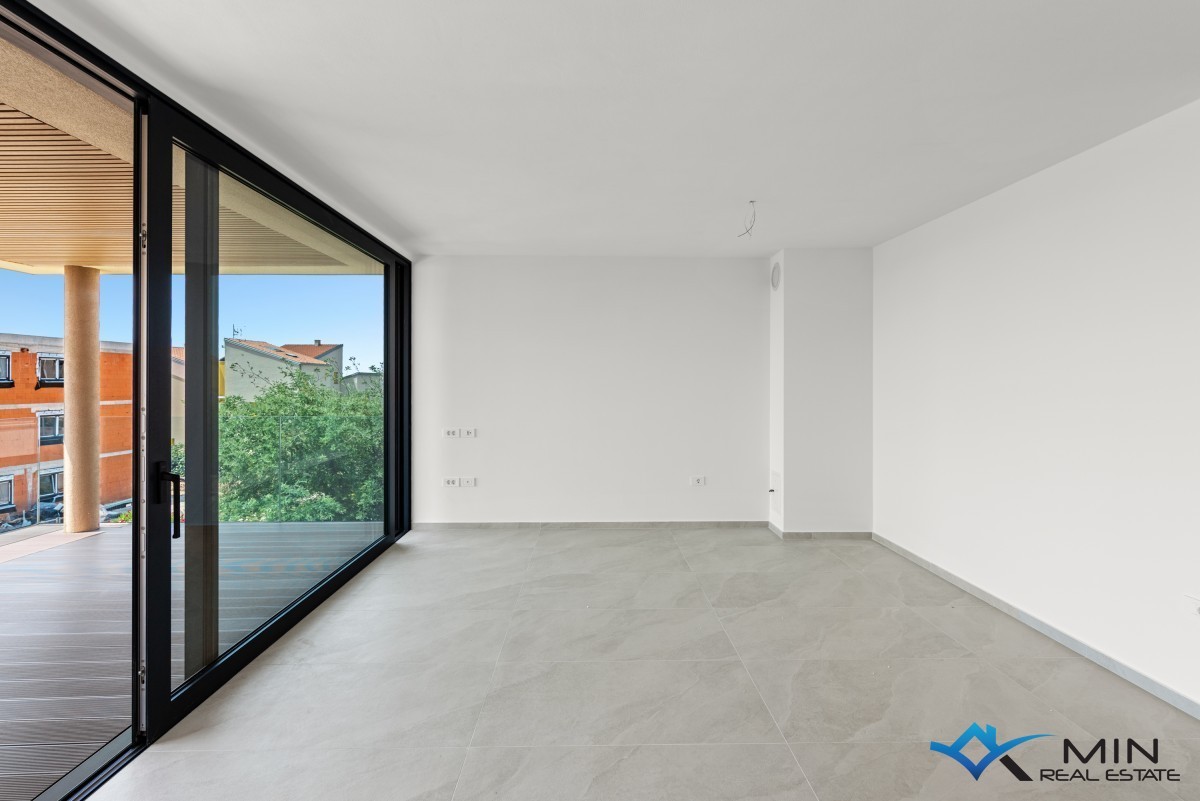 Prodamo stanovanje na zelo iskani lokaciji v Novigradu. Od morja in lepo urejene plaže je oddaljeno 900 m, od centra mesta pa 1200 m. Stanovanje se nahaja v 1. nadstropju kakovostno zgrajene stavbe z dvigalom, ki skupno obsega 8 stanovanj. Stanovanje meri 101 m2, od tega stanovanjski del pokriva 81,8 m2 (predsoba, shramba, garderoba, 2 kopalnici, 2 spalnici, kuhinja z jedilnico in dnevna soba). Stanovanju pripada pokrita terasa v velikosti 21,2 m2 (neto 10,6 m2) s pogledom na morje, shramba v velikosti 4,8 m2 (neto 3,6 m2) in parkirno mesto v velikosti 12,5 m2 (neto 2,5 m2). Stanovanje je opremljeno z električnim talnim gretjem, klimatsko napravo in kaminom. Stanovanje je opremljeno s keramiko 1. razreda, sanitarna keramika v kopalnicah pa je priznanih proizvajalcev. Stanovanje lahko uporabljate za bivanje ali v turistične namene.