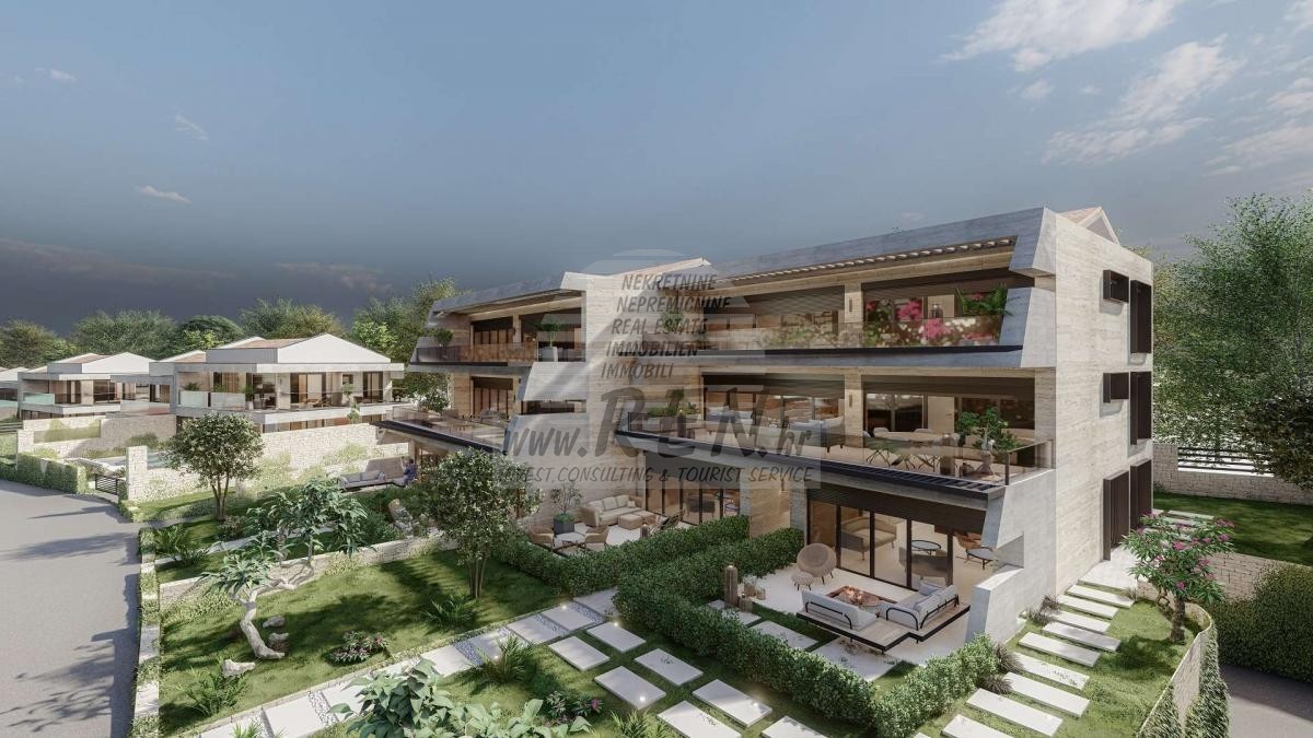 Stanovanje ima skupno 45,52 m2, zemljišče ima 8 m2, oddaljeno je 5 min. (100m) od morja in od čudovite urejene naravne plaže, 10 min. (6000m) oddaljena od centra Umaga. Apartma se nahaja v pritličju. V razvoju. Skupaj je 1 spalnica, kuhinja, dnevna soba, 1 kopalnica, shramba. Stanovanje ima lastno parkirišče, teraso, kamin, klimo, luksuzno opremljeno. V zasebnem naselju z recepcijo, možnostjo skupne uporabe telovadnice, wellnessa, otroškega igrišča, Wine bara, 24-urnim nadzorom, polnilno postajo za električne avtomobile, na voljo paketi vzdrževanja objekta.