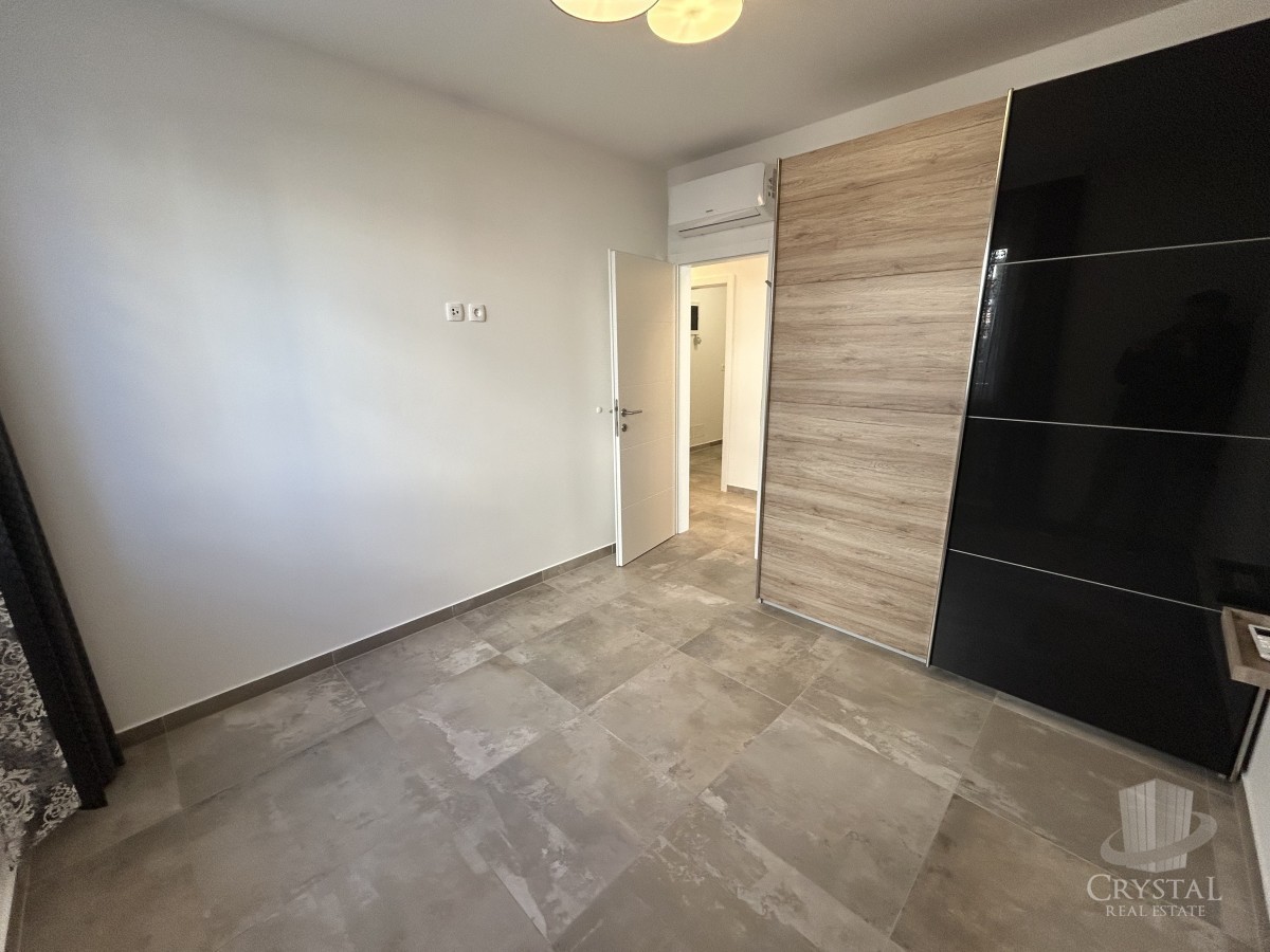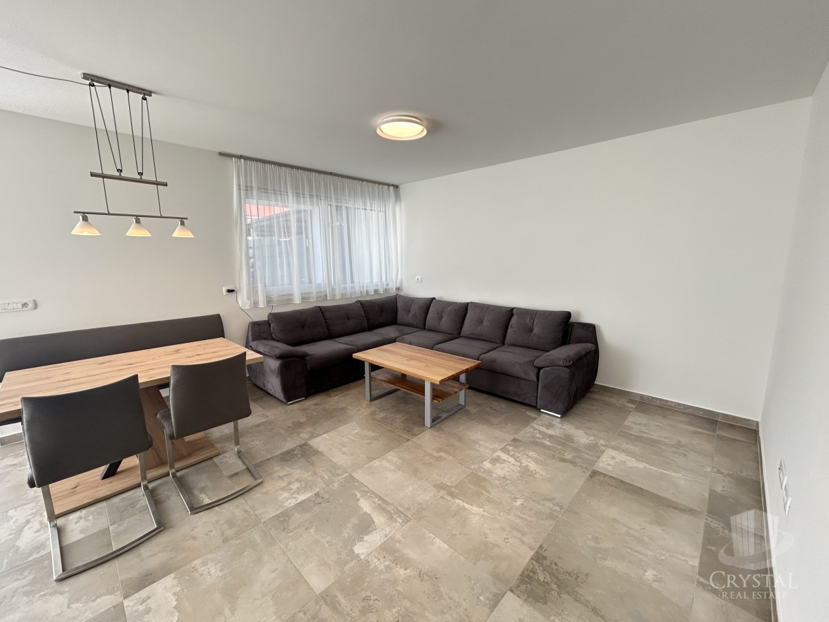 Stanovanje ima 69 m² neto bivalne površine (79 m² bruto) in obsega vhodni hodnik, kopalnico, shrambo, dve spalnici ter odprt prostor s kuhinjo, jedilnico in dnevno sobo z izhodom na pokrito teraso ter lepo urejen vrt velikosti 180 m².