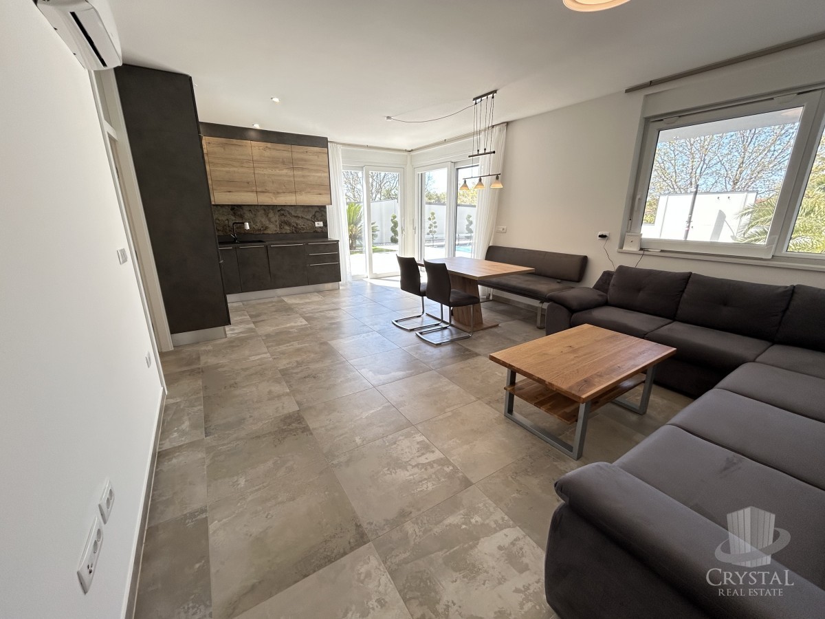 Naprodaj je moderno pritlično stanovanje na odlični lokaciji v Novigradu, le 1.000 m od morja in 1.200 m od središča mesta.