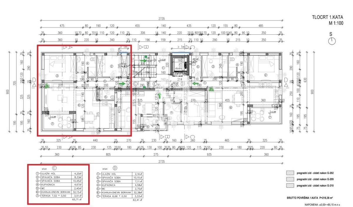 Površina stanovanja je 65,71 m2.