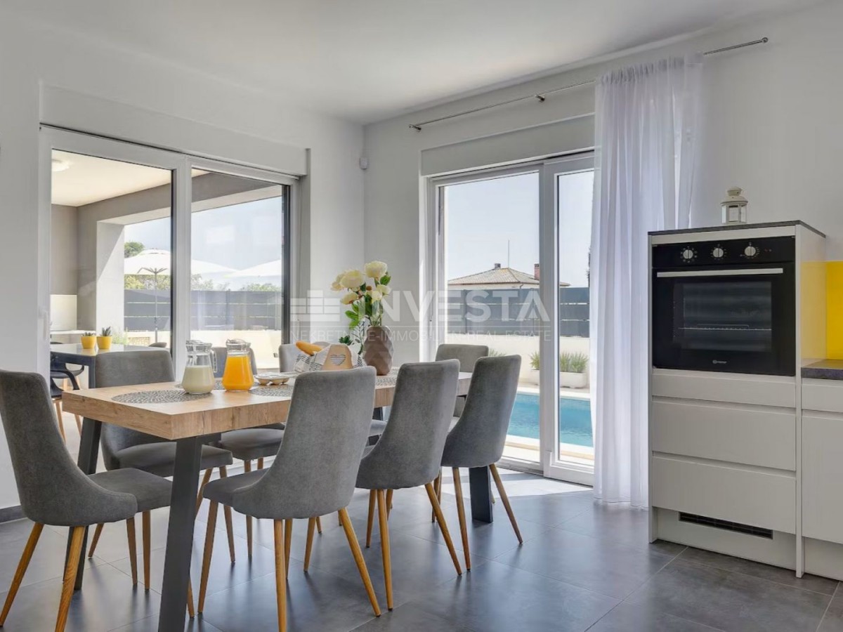 Naprodaj: sodobna vila, locirana v mirni naselbi, le nekaj minut vožnje od centra Pule. Ta samostojna hiša, zgrajena leta 2019, ponuja idealno kombinacijo funkcionalnosti, estetike in udobja ter je odlična izbira tako za družinsko življenje kot privlačna turistična naložba.