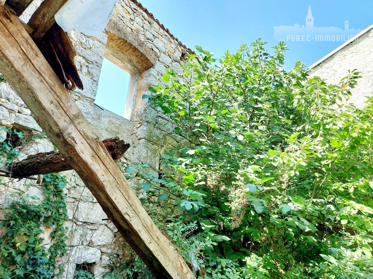 V bližini centra Poreča je naprodaj večja posest s kamnito hišo, gospodarskimi poslopji in velikim gradbenim zemljiščem.