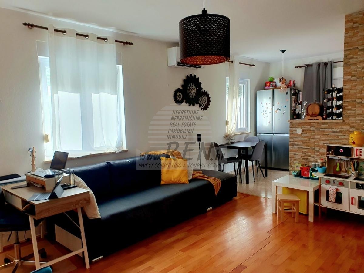 Stanovanje v Markovcu ima skupno 66 m2 + vrt, nahaja se v pritličju, oddaljen 15 min. od morja in od prekrasne urejene plaže, 15 min. odaljeno od centra Poreča. Stanovanje je razdeljeno na kuhinju/dnevnu sobu/jedilnicu, 2 spalnice, kopalnicu, terasa I spremište. Opremljen s klimo, dimnik in vlastito parkirišće.