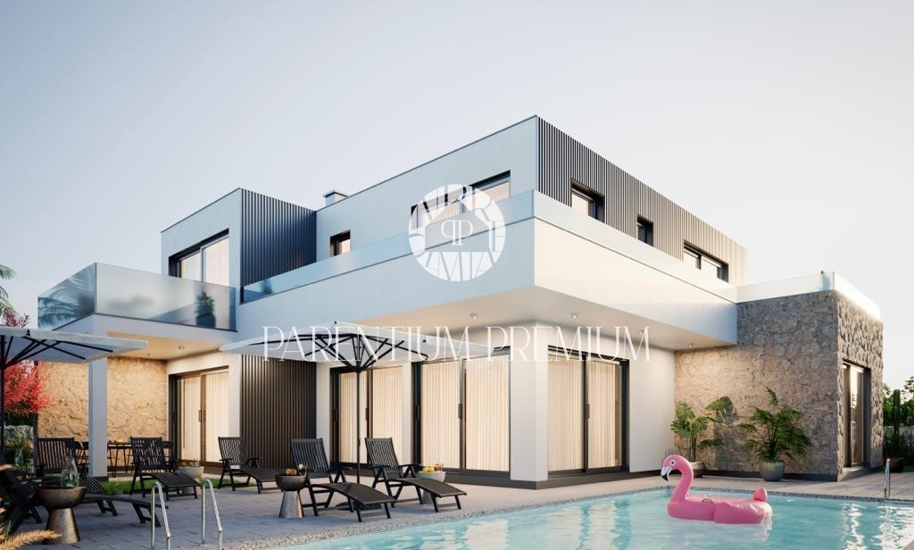 Ta nova moderna vila z bazenom 243m2 se nahaja na lepi lokaciji v bližini vseh objektov.