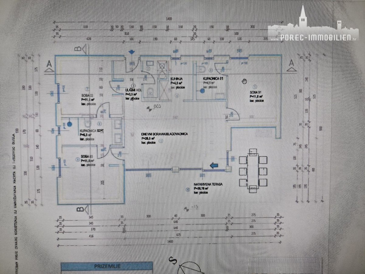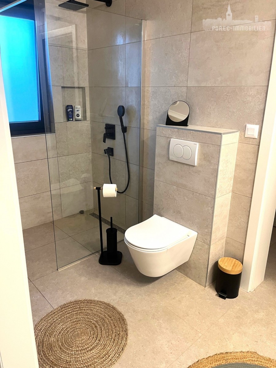 Vila obsega popolnoma opremljeno kuhinjo, tri spalnice – ena ima lastno kopalnico, preostali dve pa si delita dodatno kopalnico – prostoren dnevni prostor z jedilnico, shrambo s pralnim in sušilnim strojem ter čudovito sončno teraso z letno kuhinjo, zidanim žarom in veliko jedilno mizo – popolno za druženje z družino in prijatelji.