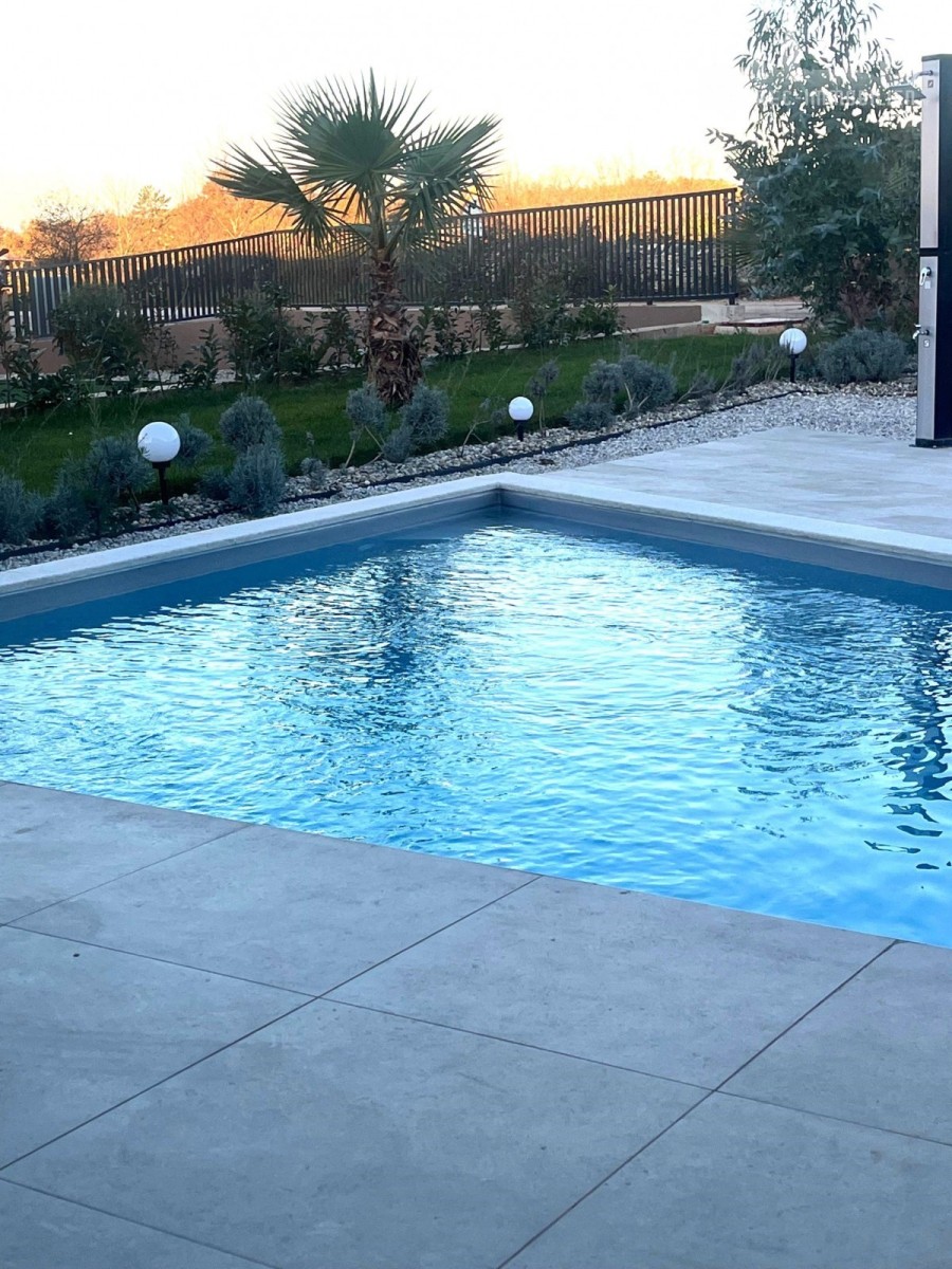 V osrčju osrednje Istre, le nekaj minut od restavracij, trgovin in vseh potrebnih storitev, obdana z naravo in oljčnimi nasadi, je naprodaj popolnoma nova, opremljena pritlična vila s površino 110 m² in bazenom velikosti 27 m², zgrajena na parceli velikosti 712 m².