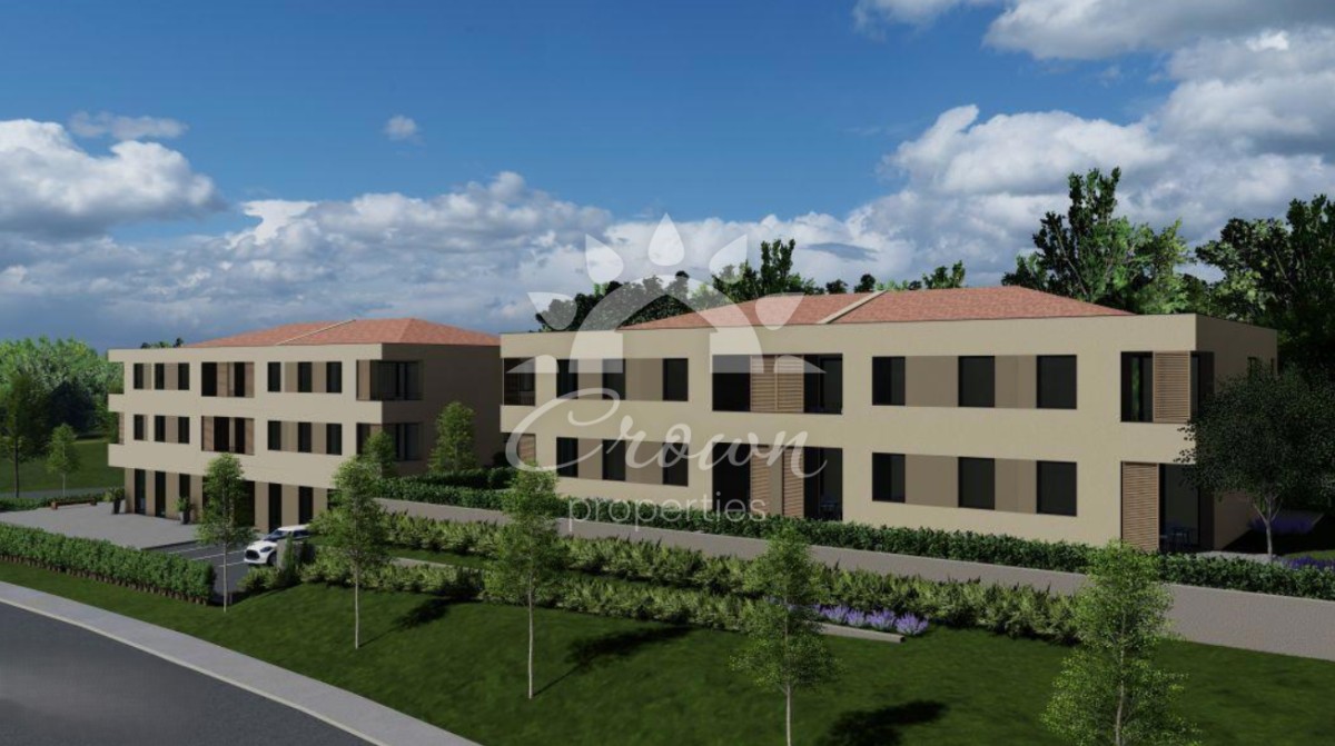 Na prodaj je dvosobno stanovanje s površino 64,16 m², ki se nahaja v prvem nadstropju moderne stanovanjske stavbe v gradnji v Barbanu. Stanovanje ima funkcionalno razporeditev in obsega vhodni hodnik, kuhinjo z jedilnico in dnevno sobo, dve spalnici ter ložo.